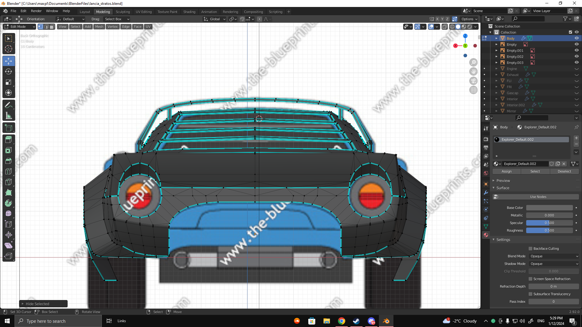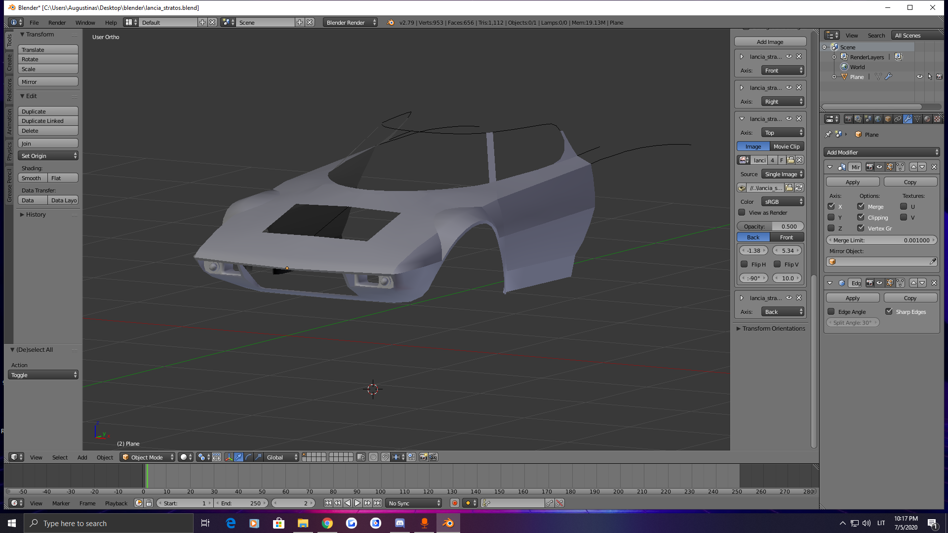 Here, I still had the old .blend file of the original car and that is it with the blueprint I used