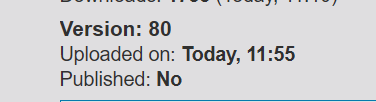 Hello there, I am attempting to apply a regular within guidelines update. The update works just fine here on the site, although in game it remains on the previous version although moving to the top of the mod list. After returning to the site I see this on the update page. I have tried to apply this update for over 24 hours as well.