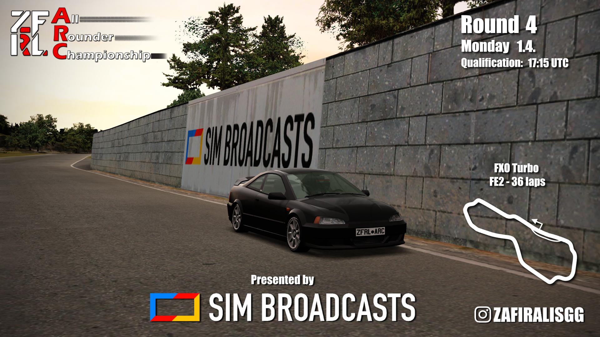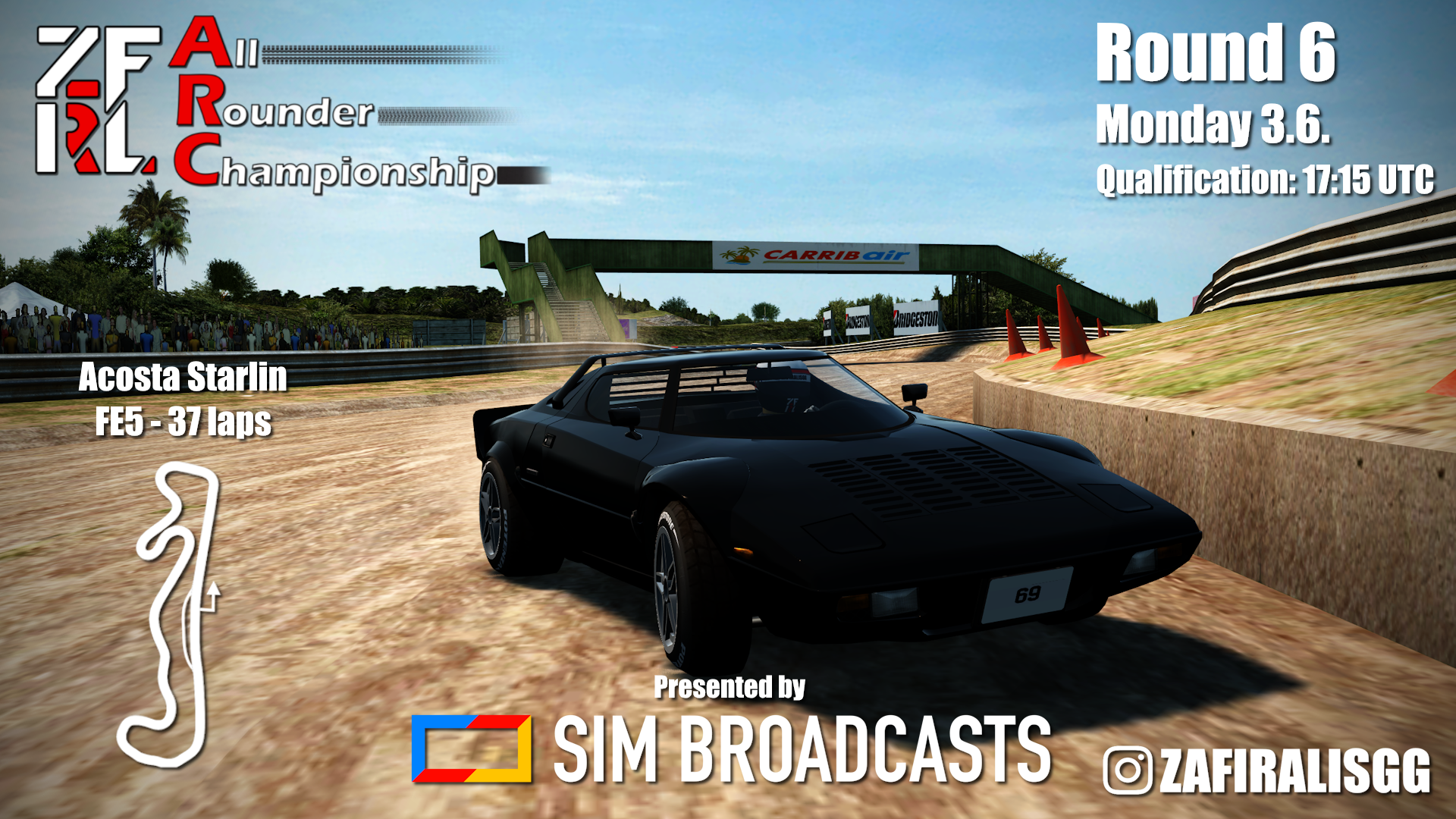 We are proud to present to you our first ever racing series: the Zafiralis All Rounder Championsip presented by Sim Broadcasts. As the name and logo suggests, the series will feature a wide range of cars and tracks with varying grip levels. The main idea of the series is to have three consecutive rounds in the same track environment with the three different types of tyres before switching to a new track environment. The races will be held monthly starting from monday 8th of January 2024, and the following races will be held on the first monday of the month (see the below for all dates). All races will be livestreamed by Sim Broadcasts on their Twitch and Youtube channels.