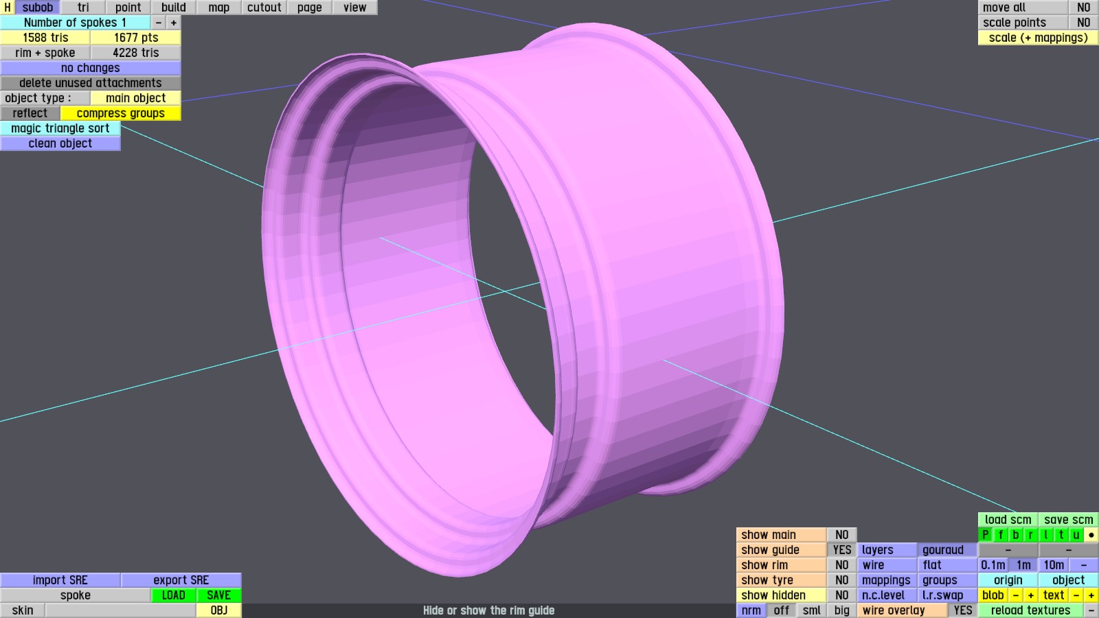 The rim guide is visible in the rim editor and also in 3D in the spoke editor.
