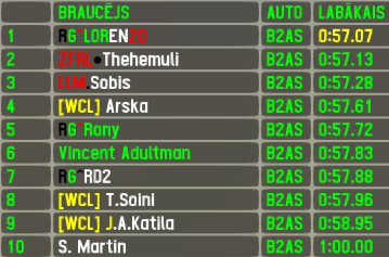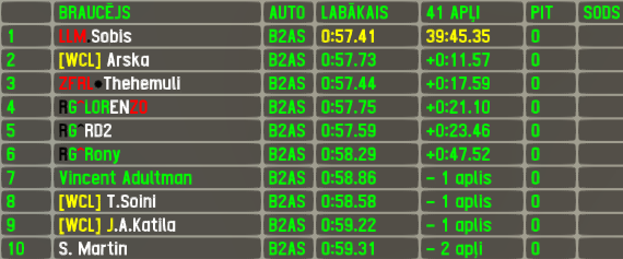 The fastest in qualifying was Lorenzo,who outrun the competition by very slim advantage,scoring his first ever AWS pole position. His previous best was 3rd place in qualifying,recorded first year ago in the same car on same track,just in reversed direction. His race however was not so convincing as the italian fell down to 4th position. The best in race was the 2019 AWS champion Sobis,who started from outside of the 3-wide front and rallied up positions to lead the last 2/3 of race distance. It was his 3rd AWS race win,previous 2 were scored on his championship season. Arska started from 1 position lower than race winner and eventually followed him through field to finish 2nd,also repeating his previous best race result in the league,however his previous 2nd place finish was achieved in 2017. Another front row starter finished 3rd - Thehemuli led 13 laps before losing lead of the race,eventually losing also 2nd place.