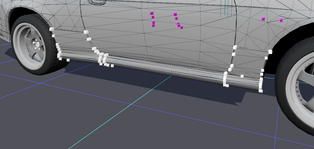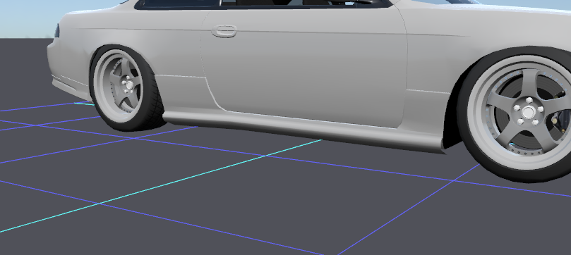 In pursuit of the IRL inspo car, I started with Avante Garde F140 wheels, I then got my preferred wheel size, and then started the slow, tedious process of pulling the fenders, adding a few extra triangles for smoothness (in game pic with the SSRs is the bad shading version before I fixed it). I finally settled on XXR 527's which miraculously hit the triangle limit on.