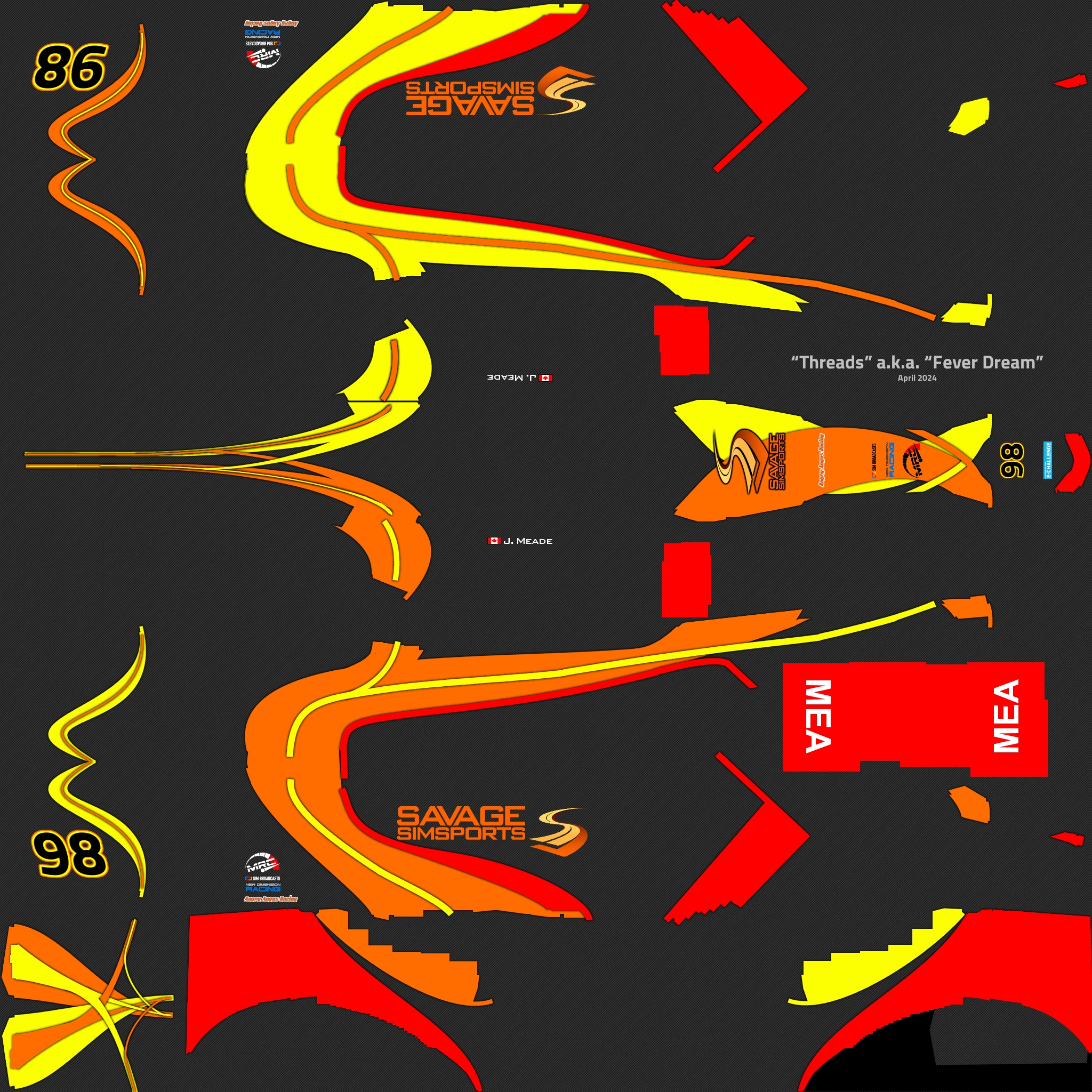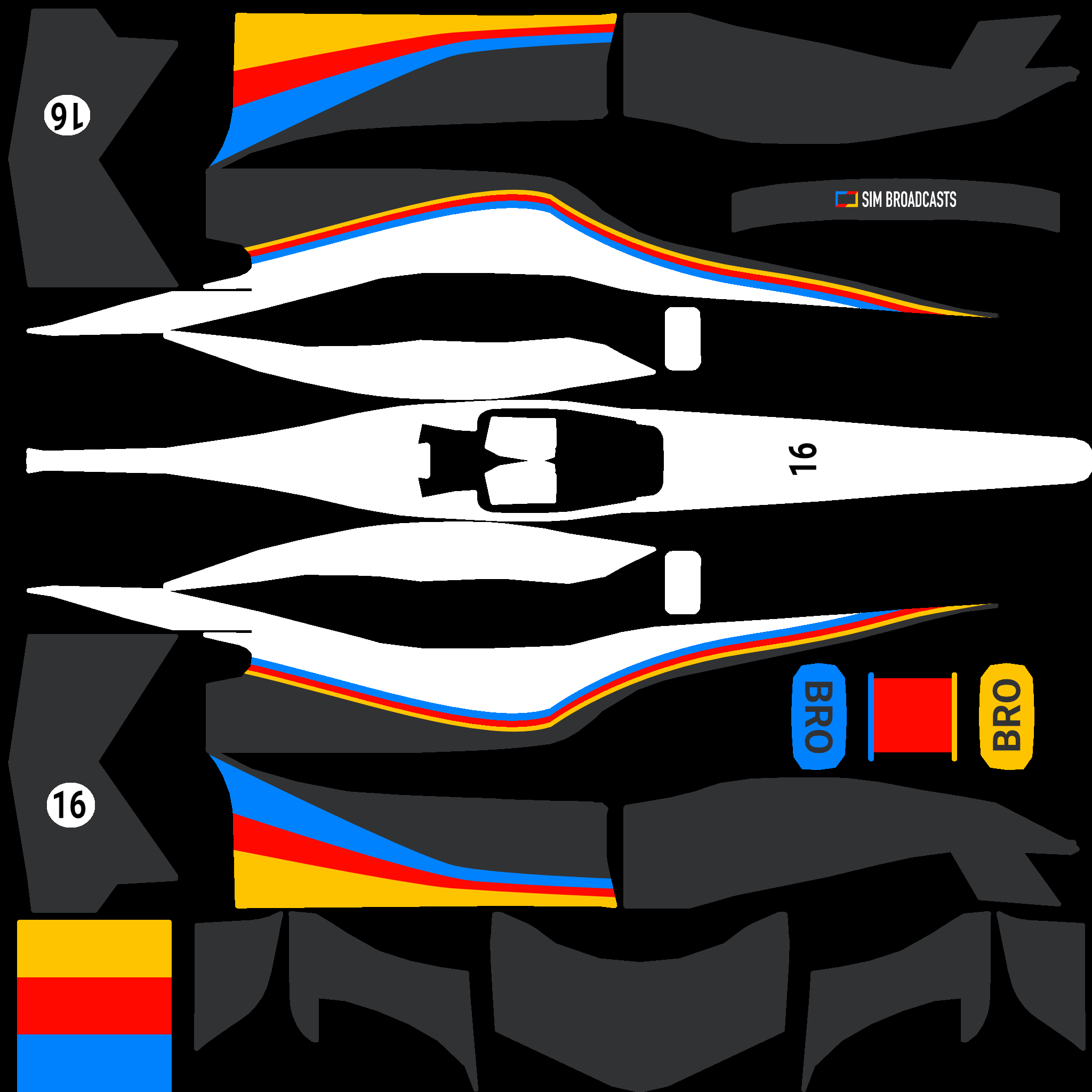 • Car number on the nose of the car, oriented to be read facing the car from the front, and on both rear wing end plates, facing the outsides of the car.