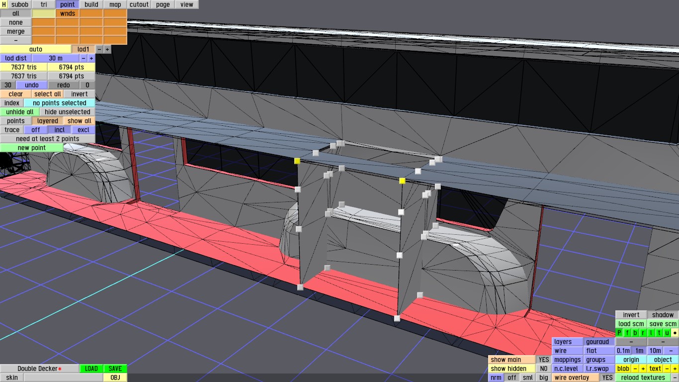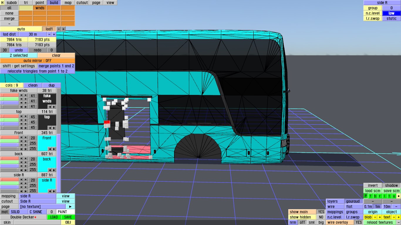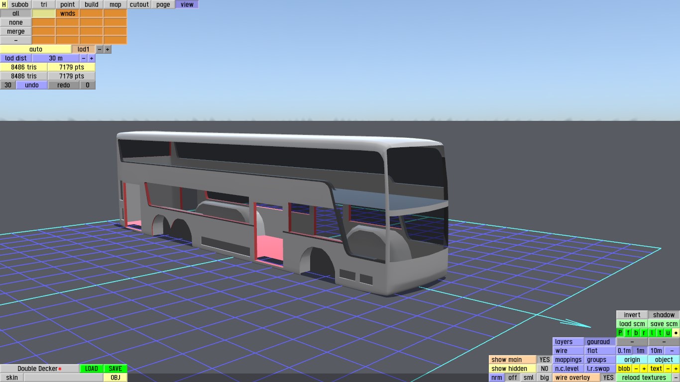 total overhaule of the side to actually fit 2 doors per side without having to deal with swapping related issues than may appear for skins, so there will be 2 doors each side and will be activatable using separate switches. (may have changes actually towards the rear door, i might delete some window on bottom deck)