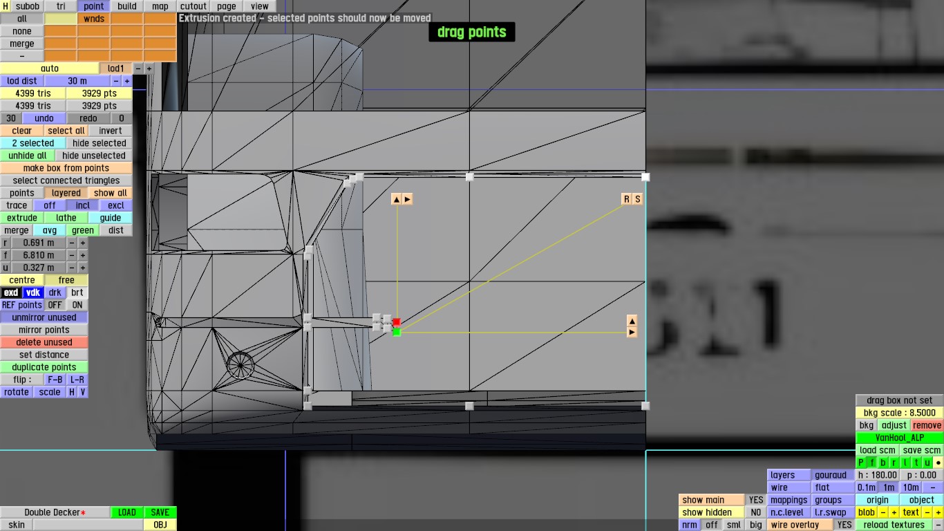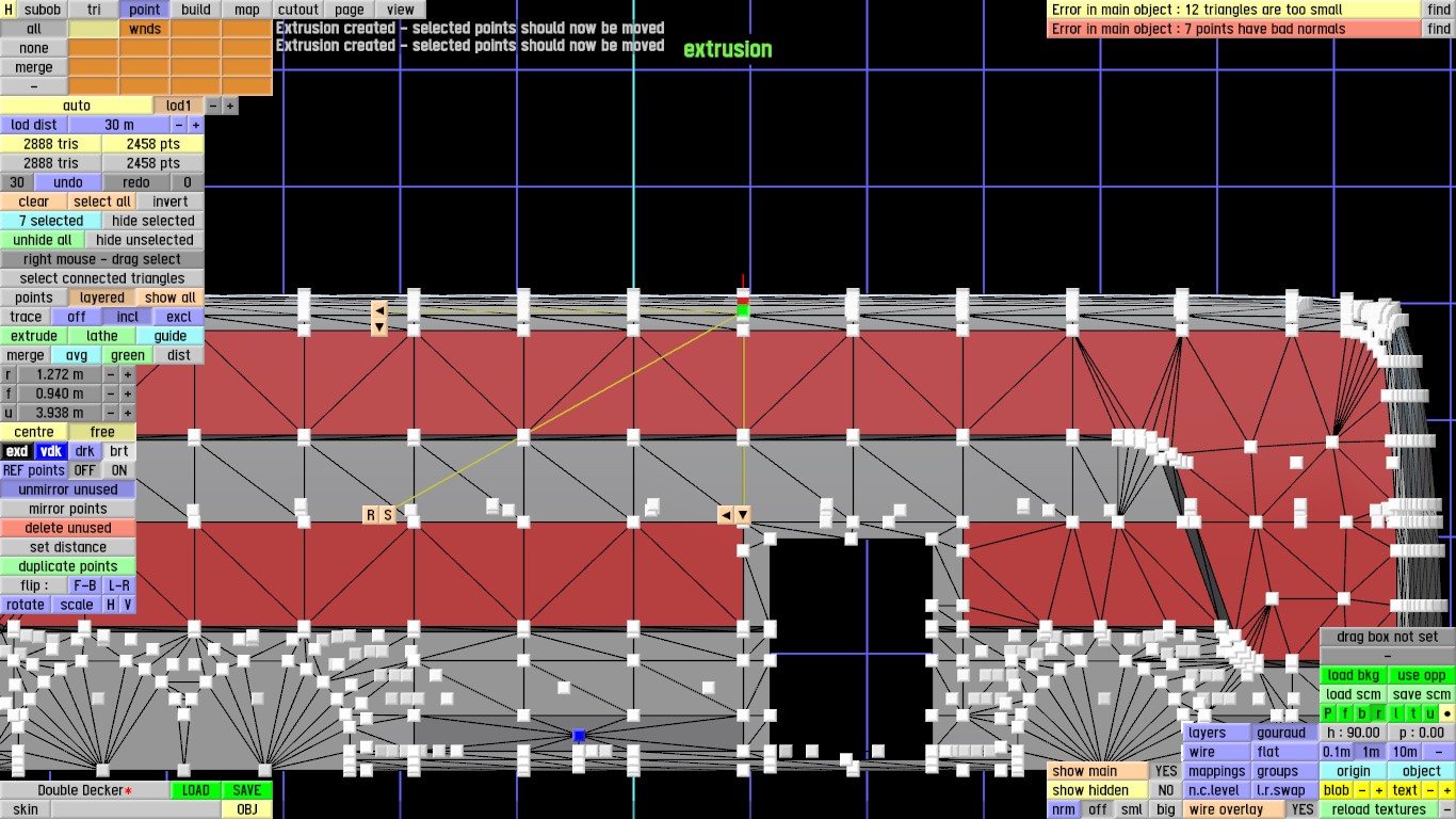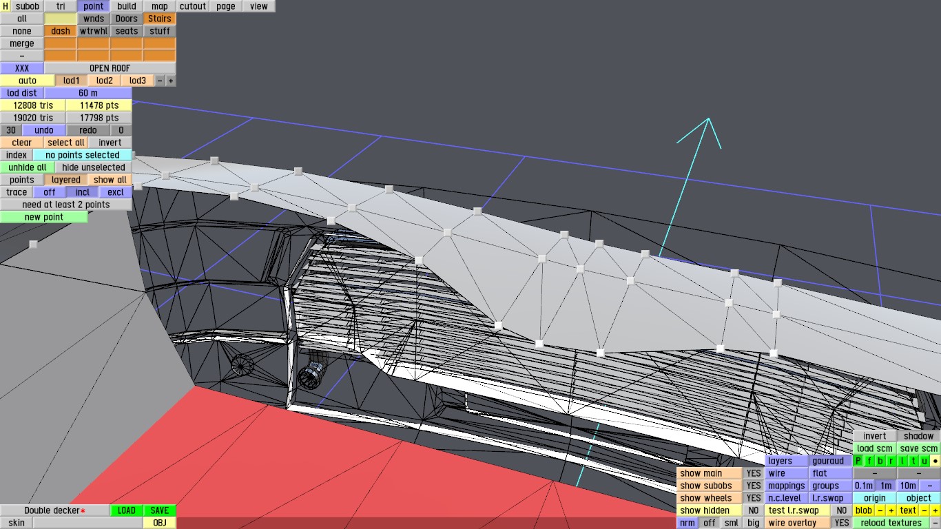 total overhaule of the side to actually fit 2 doors per side without having to deal with swapping related issues than may appear for skins, so there will be 2 doors each side and will be activatable using separate switches. (may have changes actually towards the rear door, i might delete some window on bottom deck)