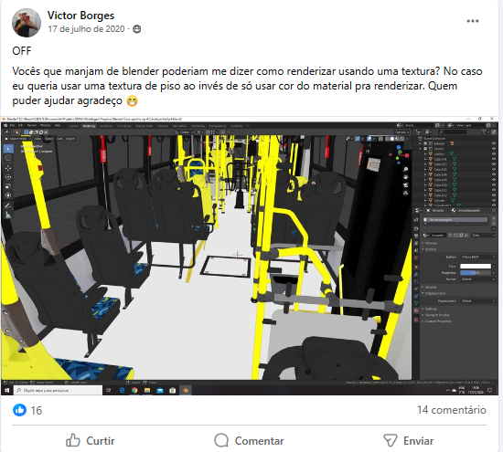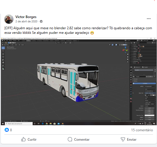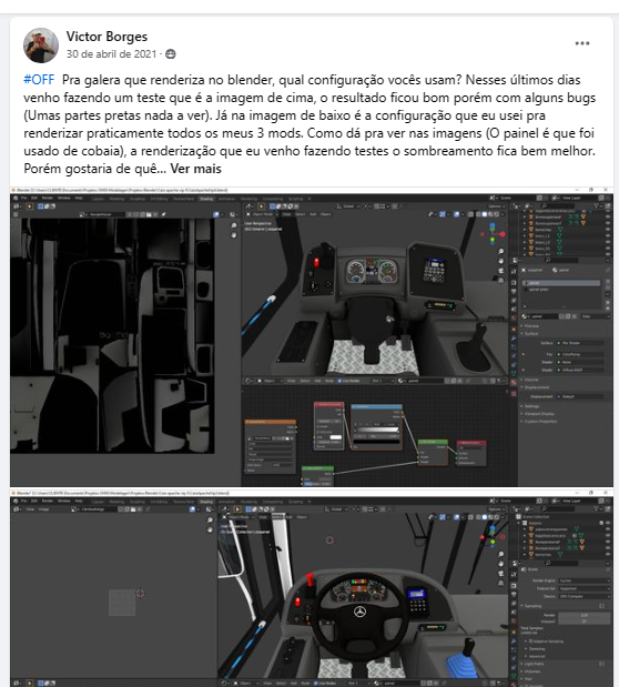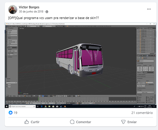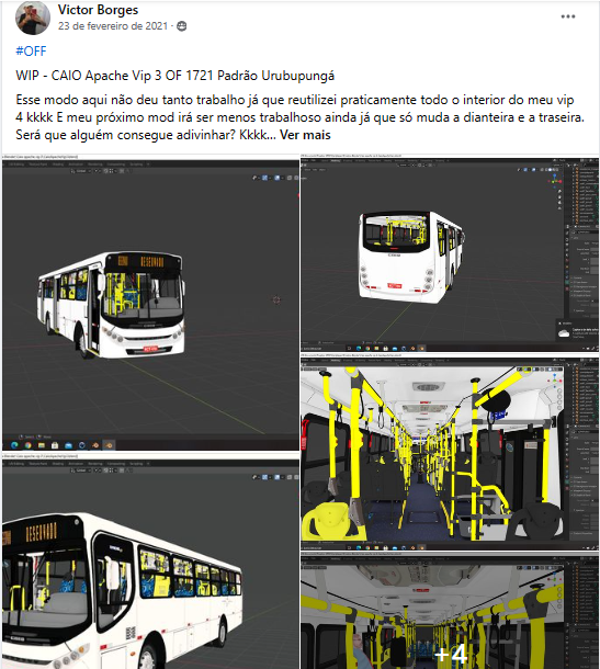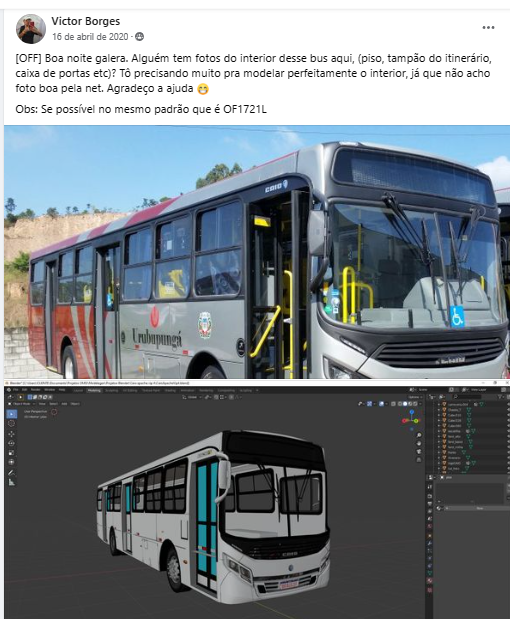 below you'll find some screenshots of Victor Borges' posts in the OMSI BRASIL V2.0 group, of him showing various photos of the 3d modeling process, screenshots of the finished models, photos of him when he was modeling in ZModeler, screenshots of him asking members of the group for photos to help him make the models.