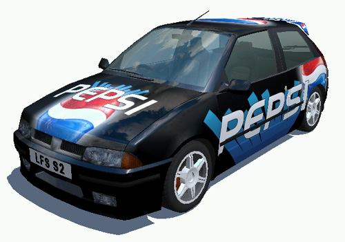 But make it as a private car - Not like a real racer - make some good cola logos on the motorhelmet and the side.. some bubles an so