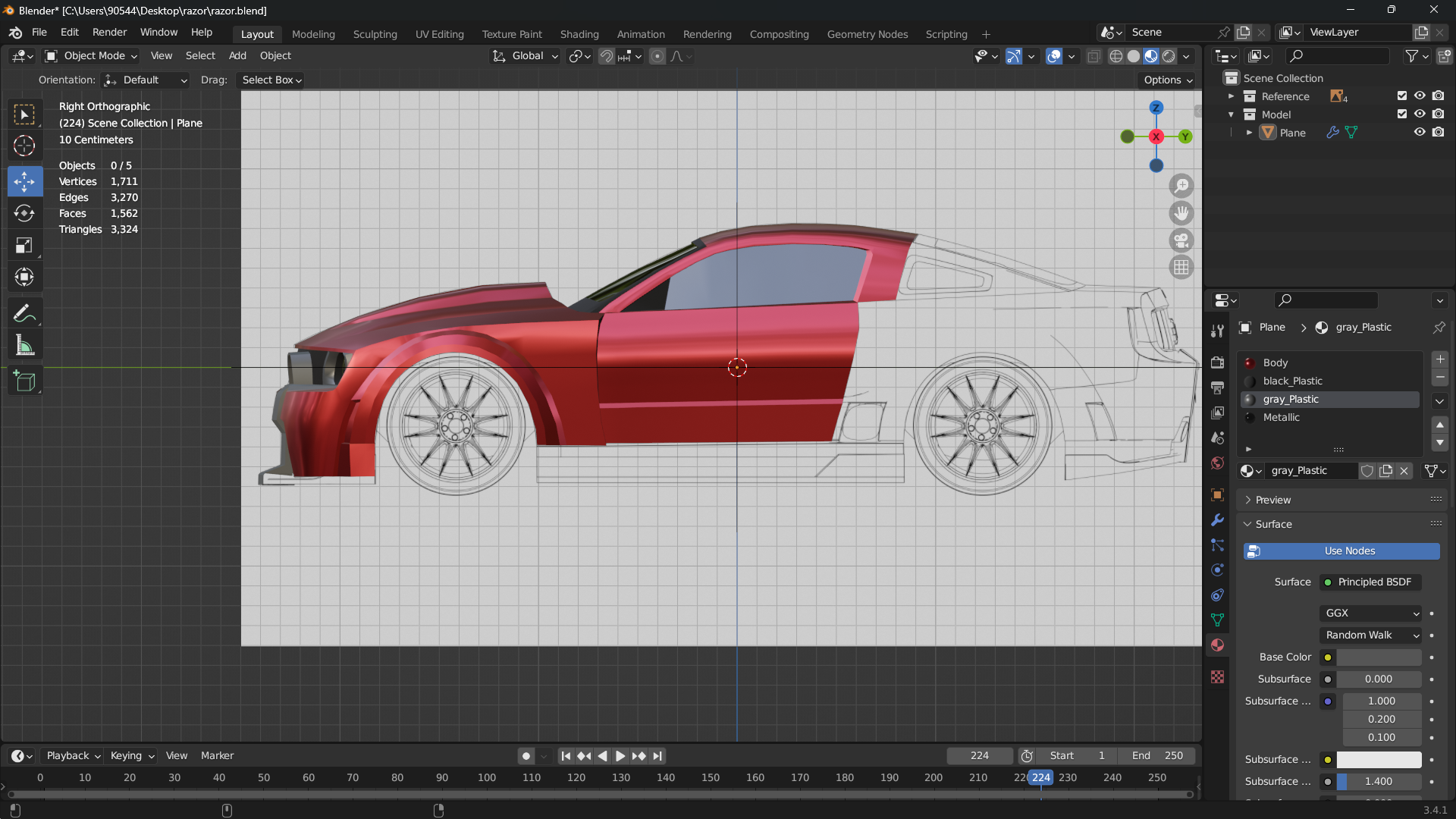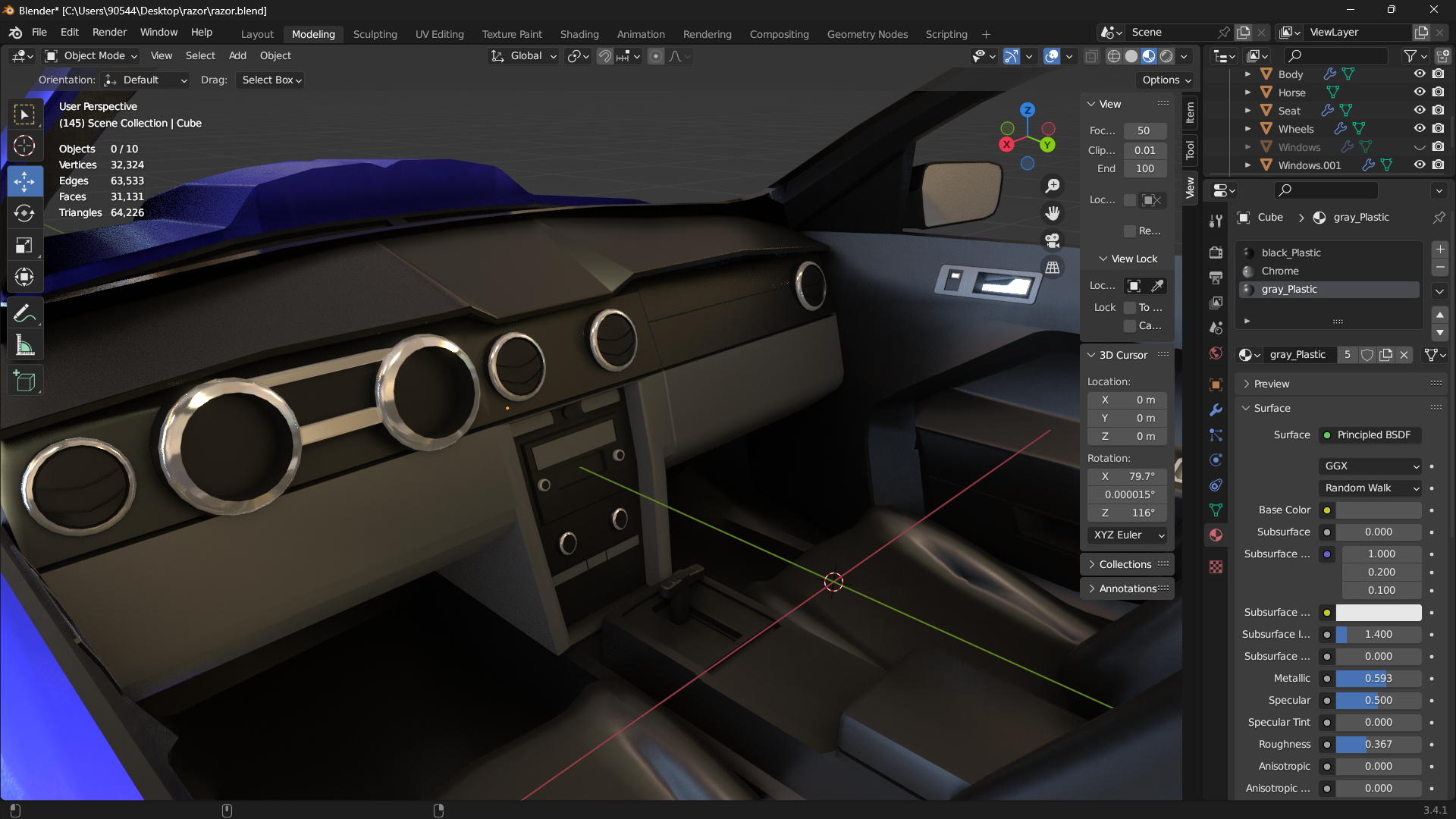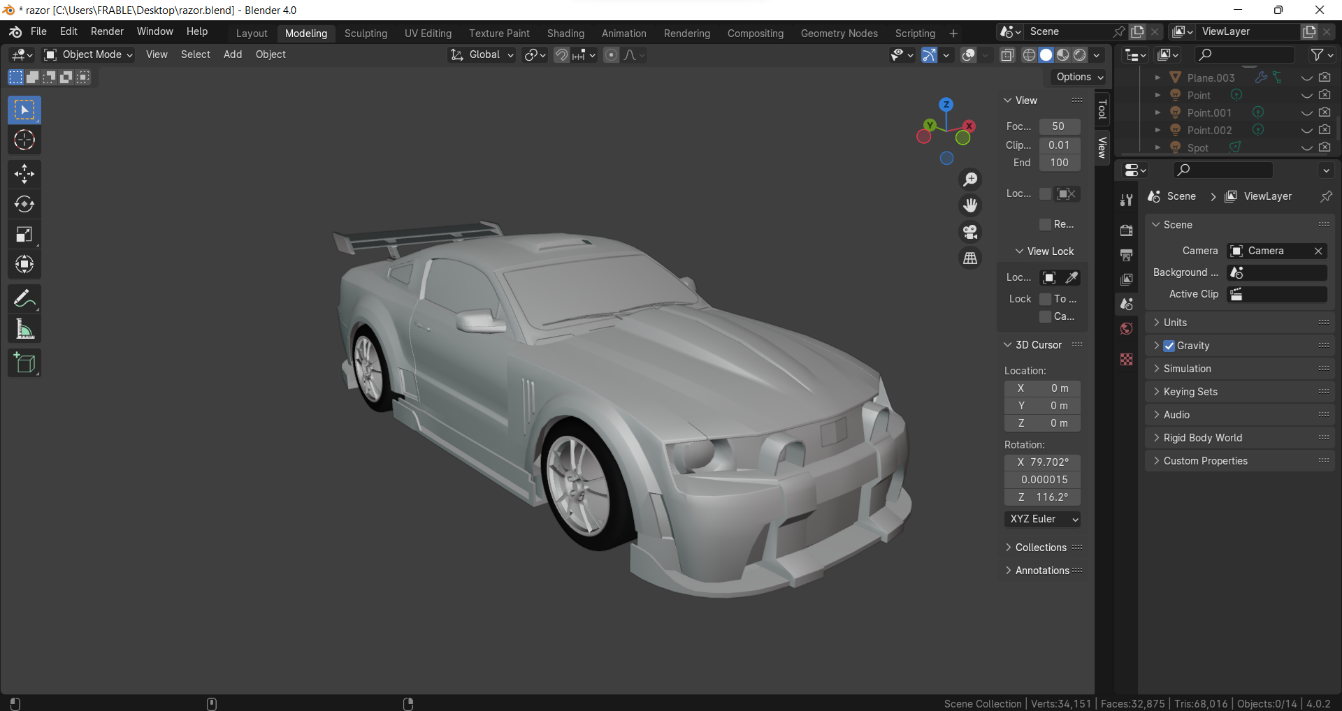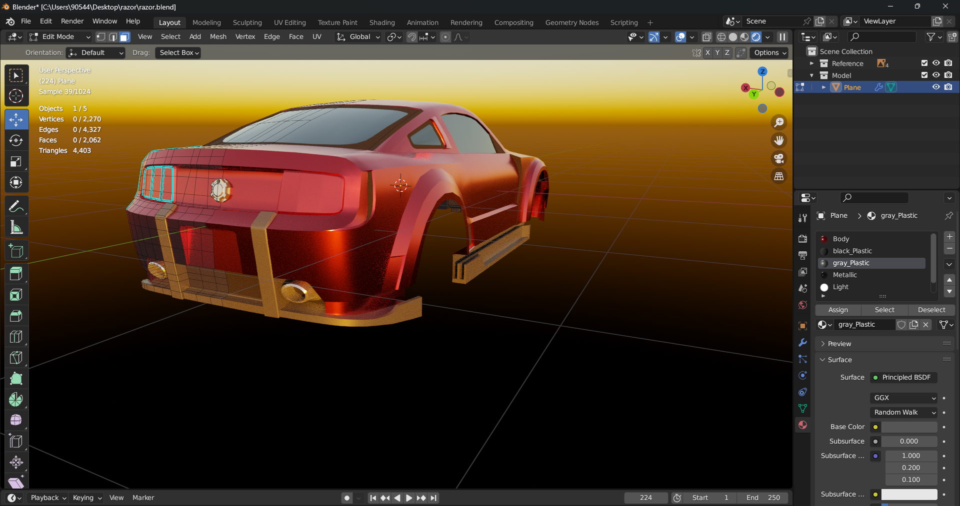 Hello, everyone. I've started building the iconic Razor's Mustang from scratch. Since I'm very new to Blender and I'm trying to learn and build at the same time, this is going to take a lot of time. I will share my step by step process here.