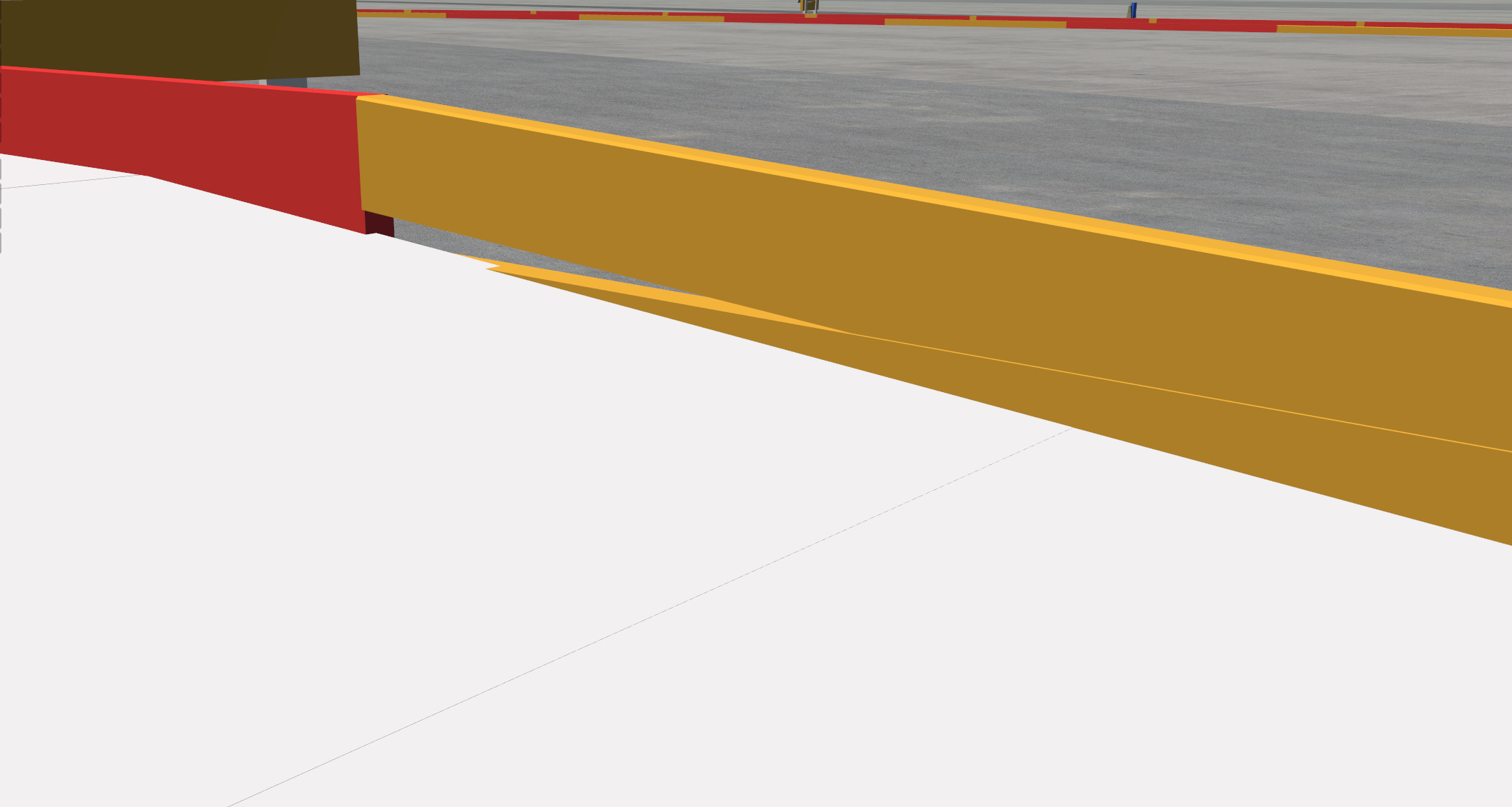 Put a blue wall round the hairpin section, as this makes it so much easier for me to judge where the turn is. I could have put a stand there, but in real life, circuit owners wouldn't as they'd have to be aware that cars can easily go straight on, and even with tyre barriars and catch fencing, objects could still end up in a crowded stand.