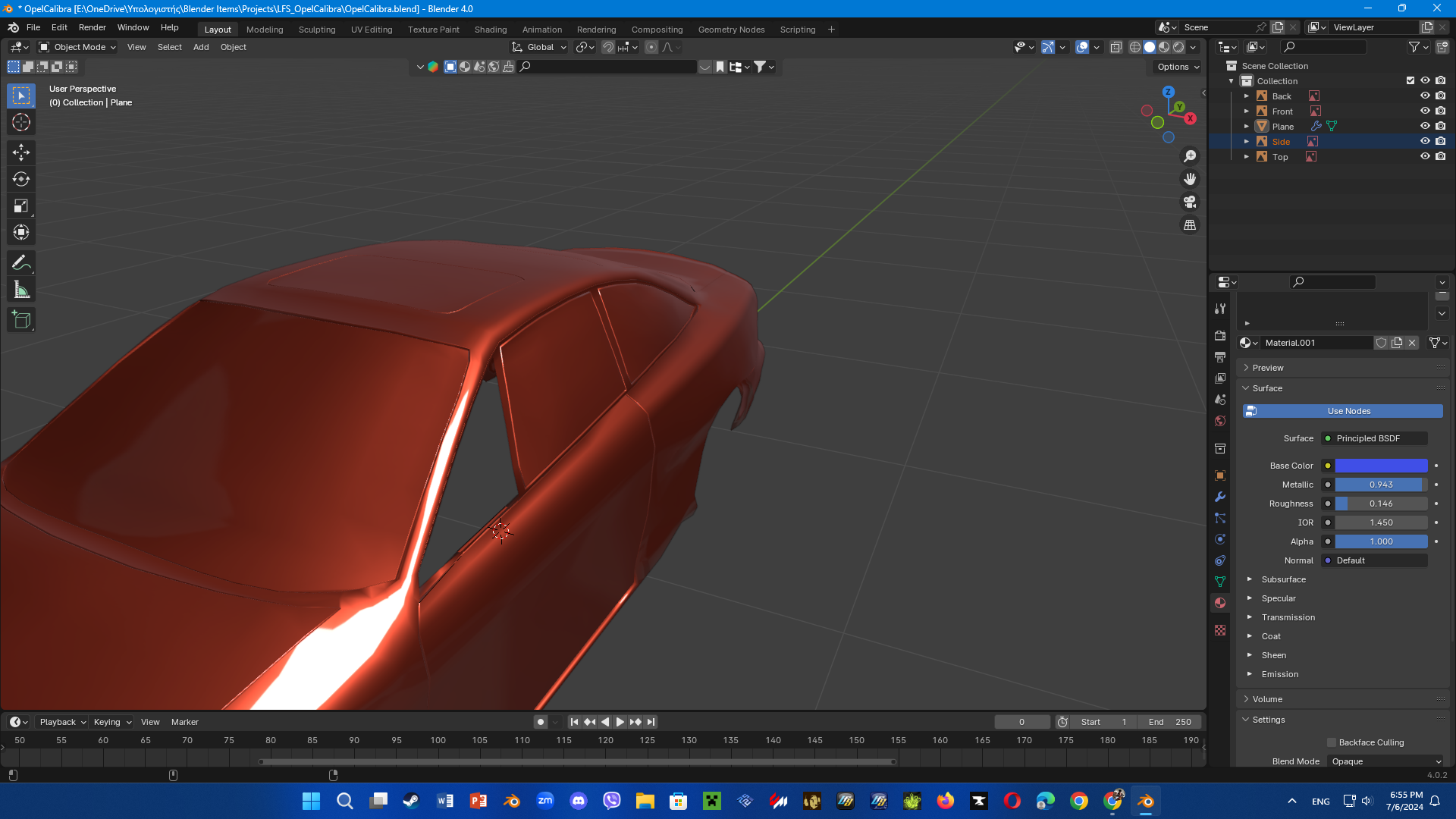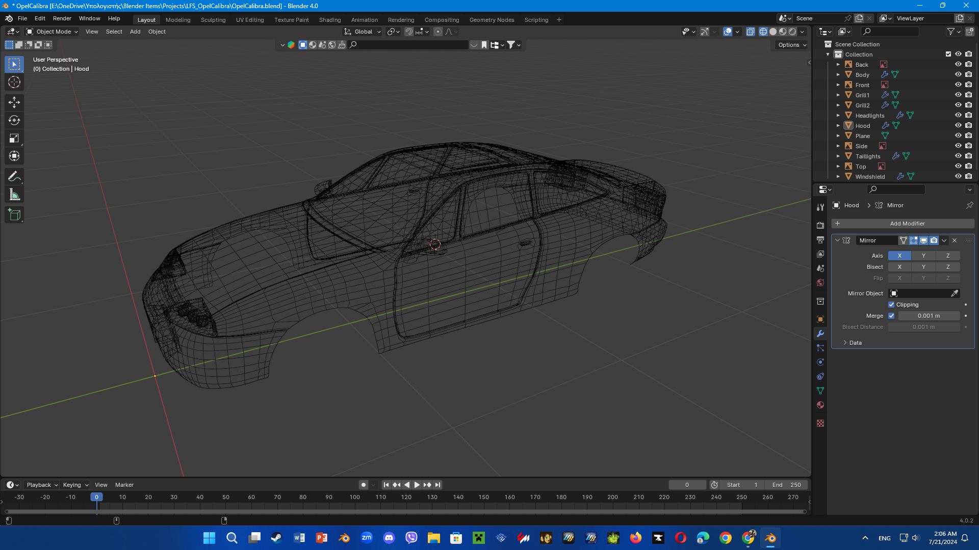 This is my first car that I have made in Blender and also my first mod. I decided to make a car with a simple design such the Opel Calibra. I have been working on this for the past 5 days I think and I am satisfied with what the mesh looks like right now Smile.