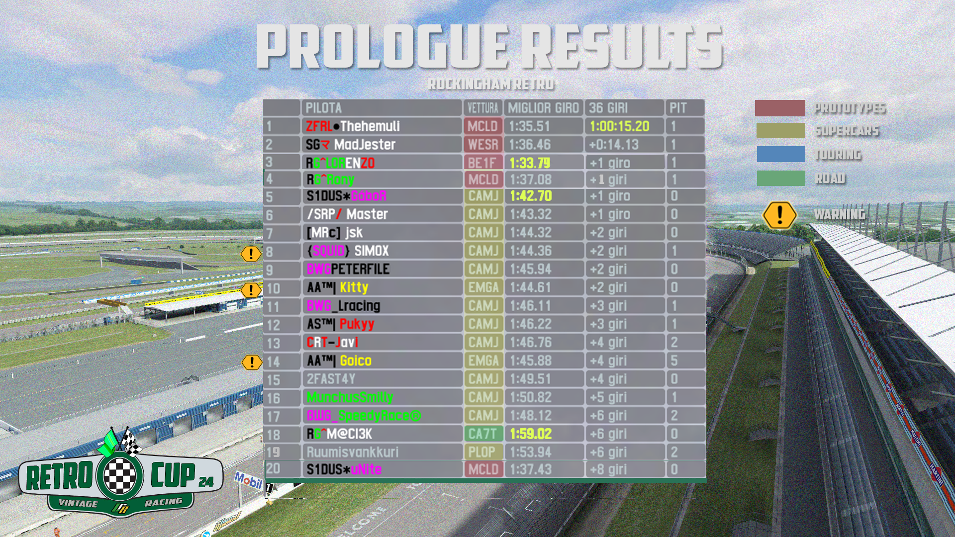 We start off next monday, July 8th, with the Prologue of the season, a 60 min timed race in Rockingham RETRO.