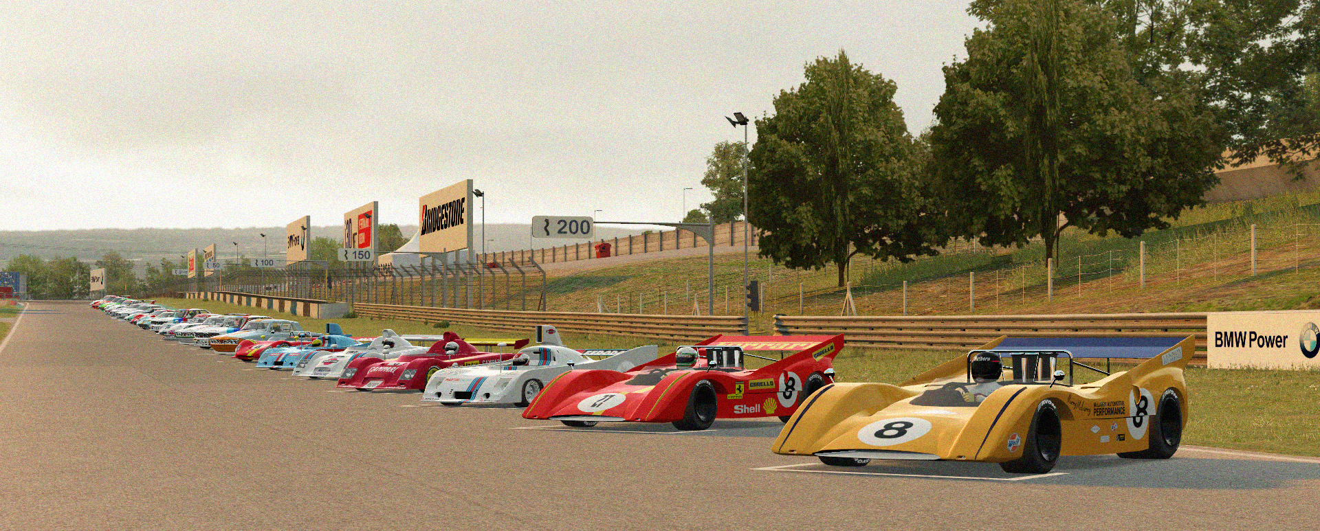 Classic Le Mans start of the race: the grid is set lined and oblique on the S/F.