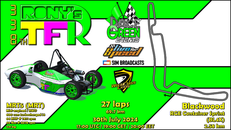 Next week it's time for RTFR XL - it will be the 2nd appearance for Radix P6 in RTFR,however the 1st in the longer version,running in Blackwood's Historic configuration in reversed direction. Full information will be posted tomorrow. In 2 weeks RTFR will return with rather basic combo,more you can find out when watching stream recording or waiting for official information in the weekend before.