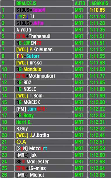 Last MRT race won by: S1DUS*GáboR (304th RTFR - RO National)