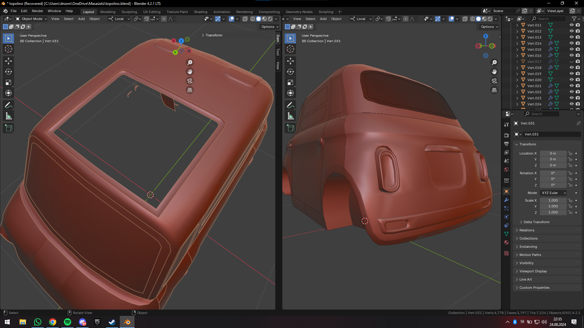 Modeled most of the upper and plastic parts. Also modeled the lights.