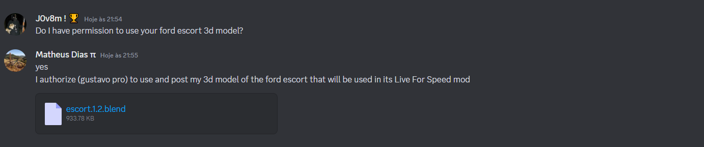 Matheus GamerJFTV:I authorize (gustavo pro) to use and post my 3d model of the ford escort that will be used in its Live For Speed mod