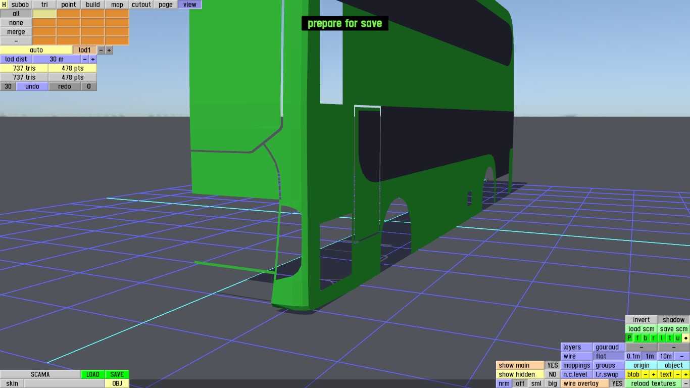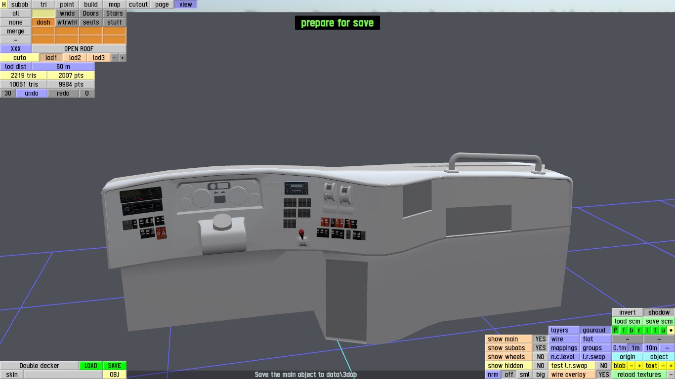 total overhaule of the side to actually fit 2 doors per side without having to deal with swapping related issues than may appear for skins, so there will be 2 doors each side and will be activatable using separate switches. (may have changes actually towards the rear door, i might delete some window on bottom deck)