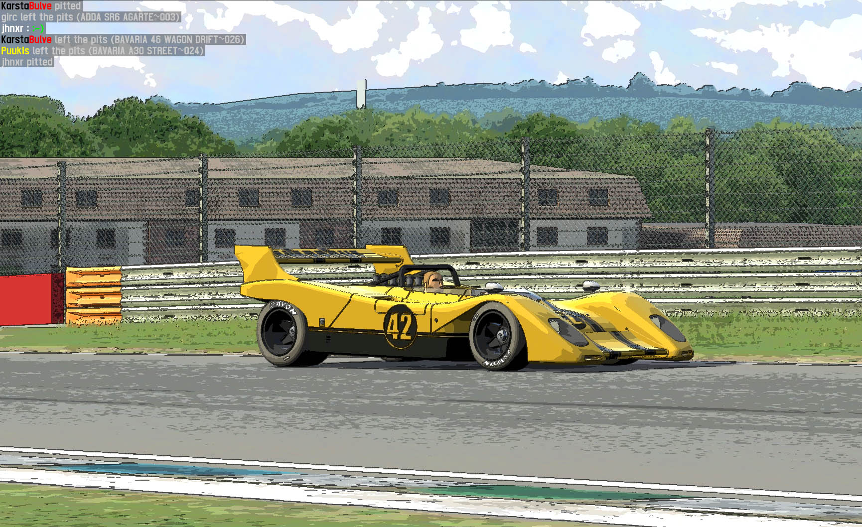 I used a post-processing shader only, to keep it lightweight and because it can be turned off in-game. Of course, it has just a rough color-based approximation of contours. On the other hand, if you are not "afraid" to modify other shaders, IMHO there might be a better-looking solution using Sobel kernels over a depth-map to compute "real" depth-based contours. In that case, pixel shaders (before post-processing shader) must be modified to expose per-texel depth information. I am not sure what LFS does with the alpha-channel. If it is not necessary for some LFS algorithms, depth can be stored directly as a result alpha and the post-processing shader can apply Sobel kernels convolution on it (no gaussian smoothing is needed in this case).