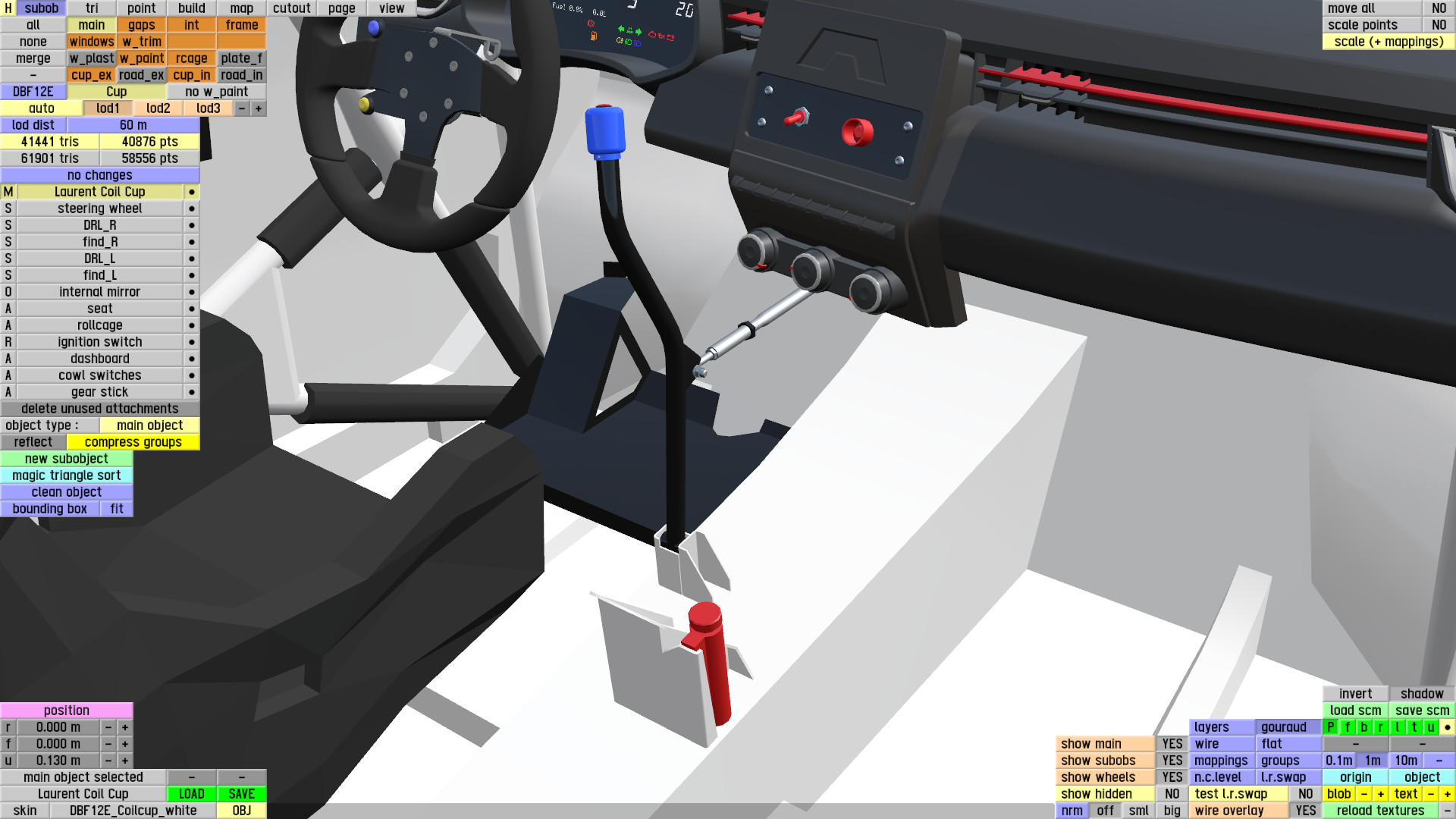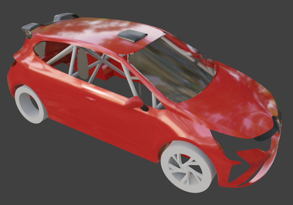 I started modeling a Renault Clio Cup, as I found it interesting that the car basically drove on 3 wheels in some corners, since the inside rear wheel tends to lift. I'm happy to see that it is also possible in LFS (and while tweaking the suspensions, I realized the XFR also exhibited this behavior to some extent), although more work is needed as it likes to flip as well.
