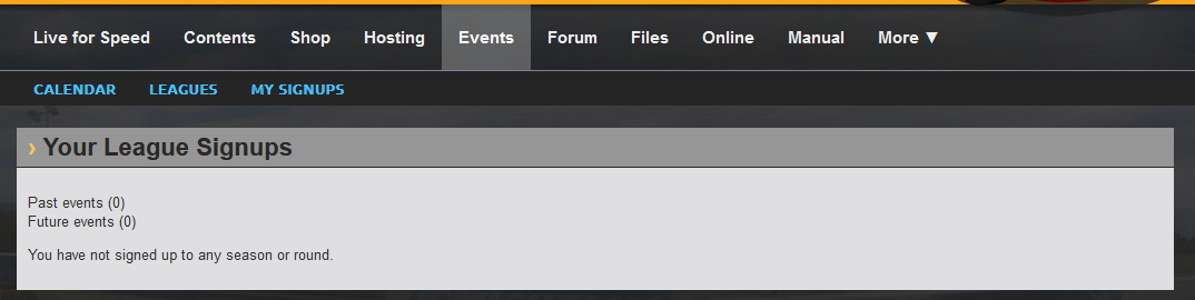 Quote from Scawen :I have just changed it so you can see signups in inactive leagues too, so now you can see your signup to my league, in My Signups section.