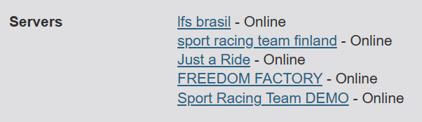 - Reliably choose the order of them. I understand the first server is the main/primary one, and in case its offline (or, apparently, hidden), LFS Entry Screen chooses the second one in the order. And if that one too is not online, the third one, etc. However, I just tested with this: