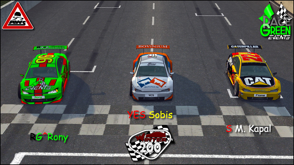After race with longest lap comes the race with fastest race speed - welcome to AWS diversity racing! The Winter 200 is the most classic AWS round as it has been in schedule in every single season,often even as season finale. This year as penultimate round the race at Kyoto Oval will once again benefit drivers who can cooperate with others - 2 cars have twice the engine power,but less than twice of wind resistance! With high speeds,any errors can be costly,so winning this race has proved to be difficult on regular basis - event's history shows only a single 2 time race winner during 13 years.