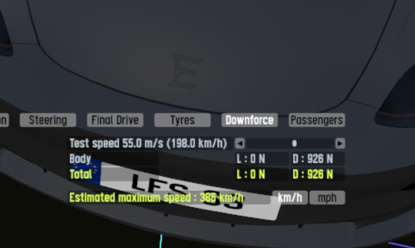 There was a comment about downforce being incorrect. This did need some adjusting and I should have ran these calculations the first time. This corrected downforce will be coming in an update very soon. Here are the new downforce numbers - if you like some light algebra, you will enjoy