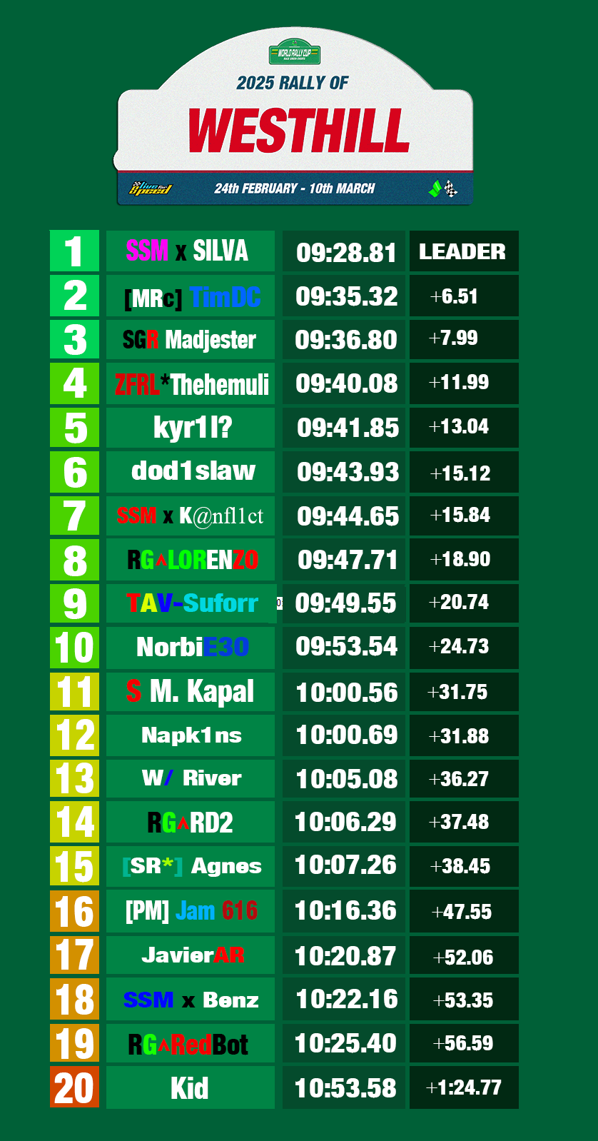 It's time for the Westhill Rally: big stages, high speeds, lots of dangers around the course, this rally is going to split the man from the boys and maybe create some upsets in the overall standings!