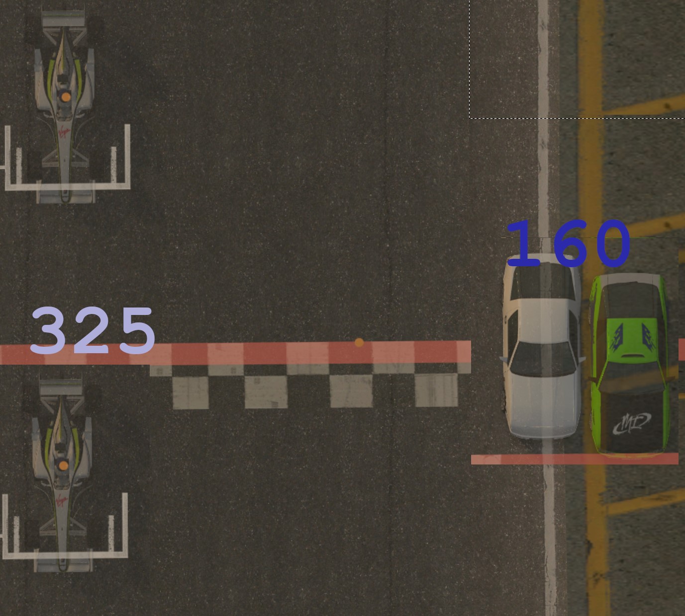 Anyway, in the new version of LFS, the front of the car is used instead of the car model's origin, so it doesn't matter about different cars, plus the accuracy of results is much improved by the 1000Hz physics.