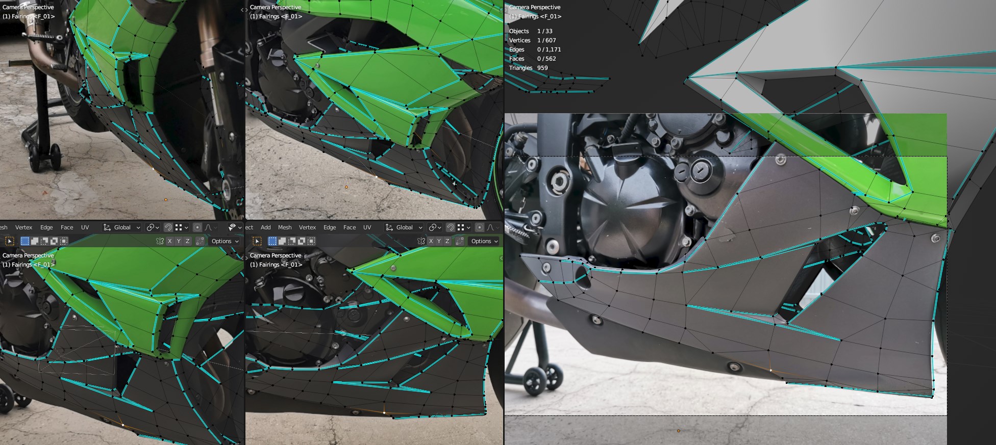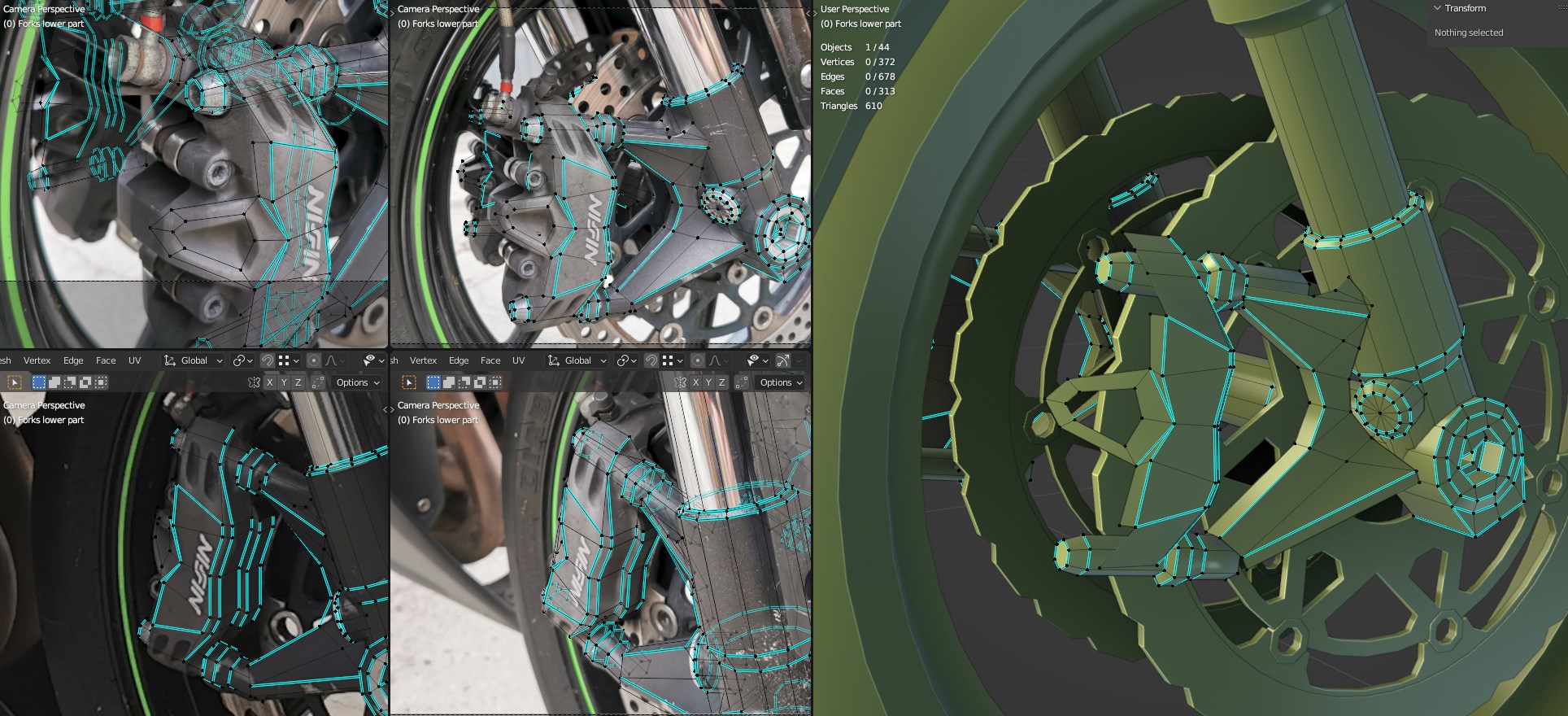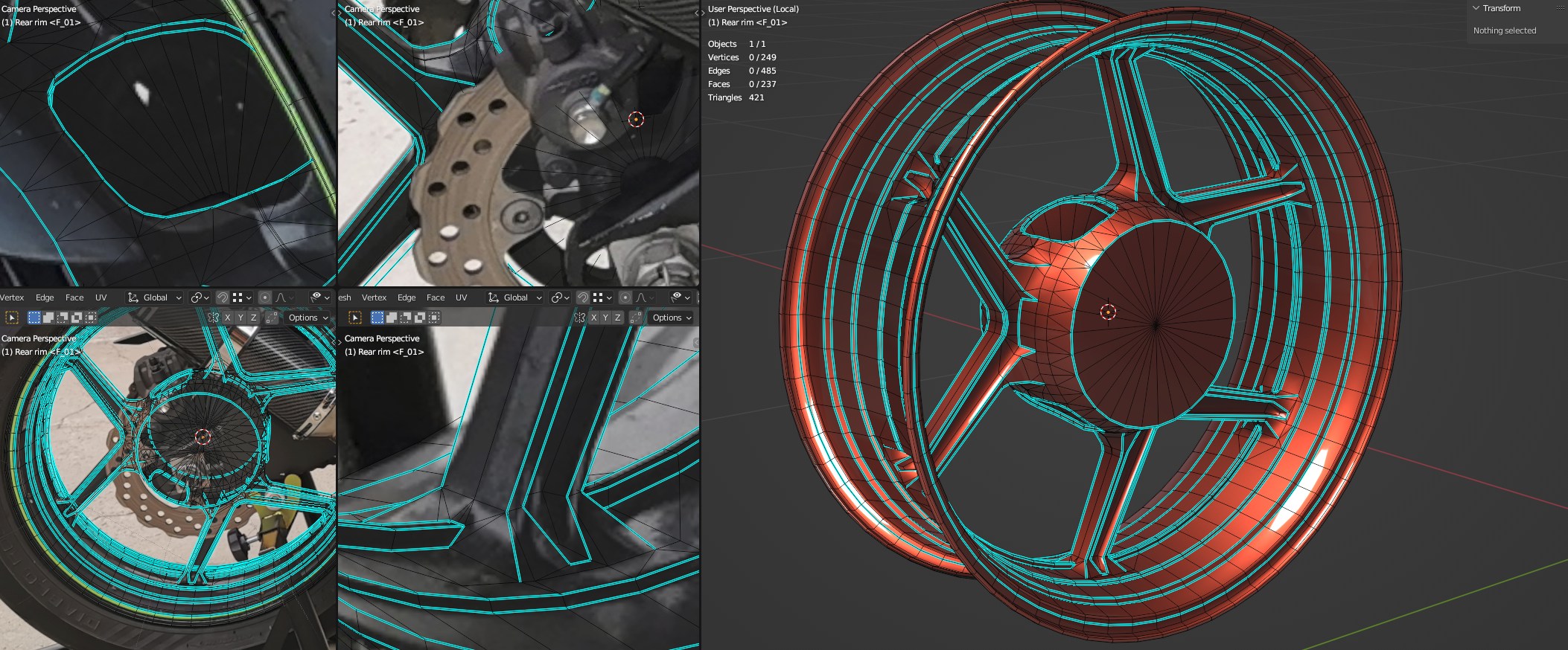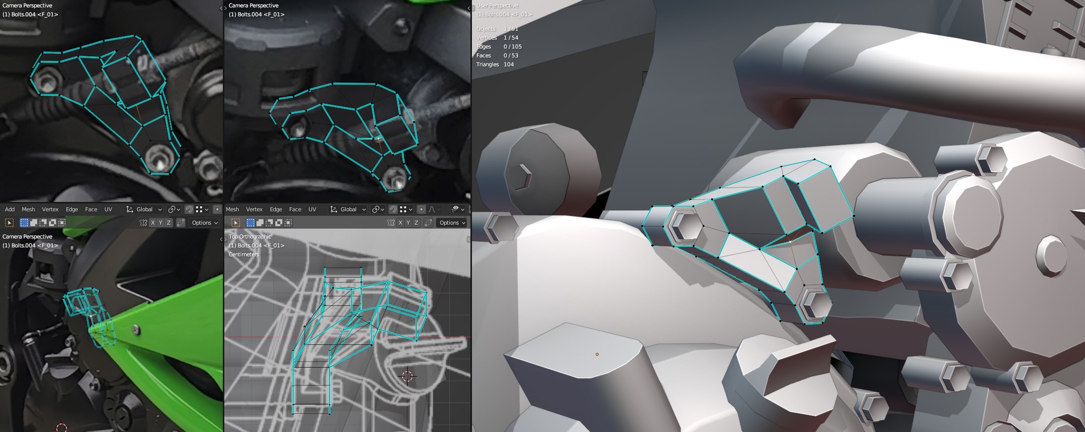 The way i started modeling my bike was that i took a lot of photos from all sides (over 500) and then used a photogrammetry software to make a rought model out of them. Then exported the mesh with cameras into blender.