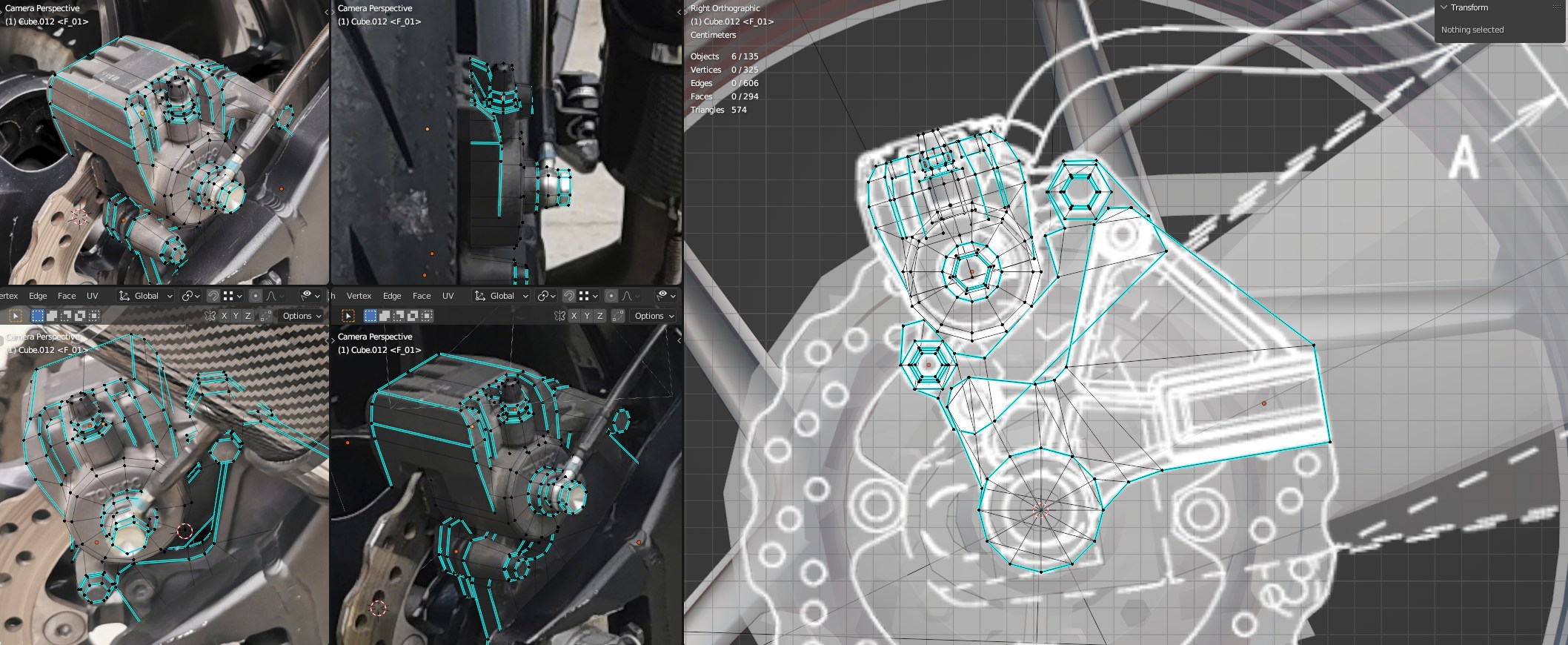 Started modeling rear swingarm, again some cameras weren't aligning well, but i did what i could.