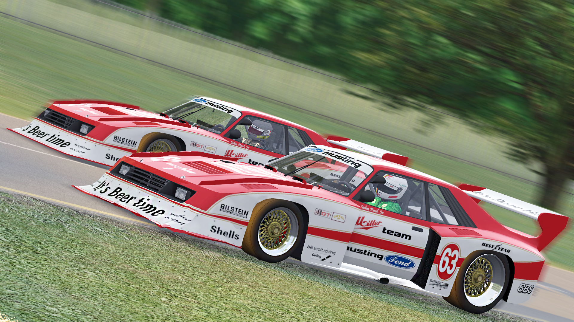 First drama came at Lap 7, when the Ford Musting of J.Williams spun out in the first corner, just ahead of Trespasser, who had no time to react and jumped over the hood of the Group 5 car, rolling over into the gravel trap.