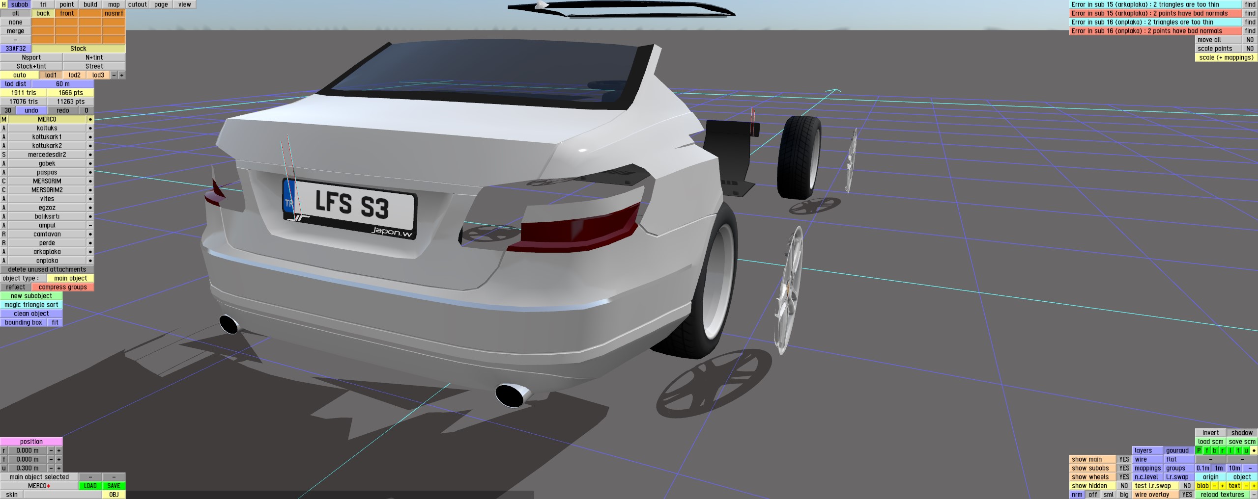 I decided to share a long-standing project here because it has progressed enough. As you all know, as a cruise player, I design cars that everyone frequently encounters for lfs. I am currently working on a Mercedes W212. I will share the progress with you here, feel free to share your ideas and suggestions with me.