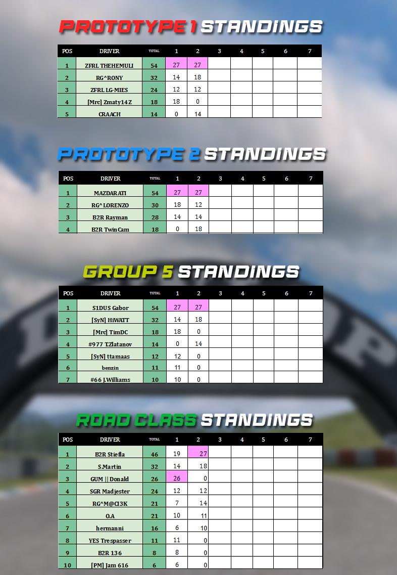 - Changing driver at the pit-stop IS ALLOWED, but the final results will see the points splitted between the two drivers.