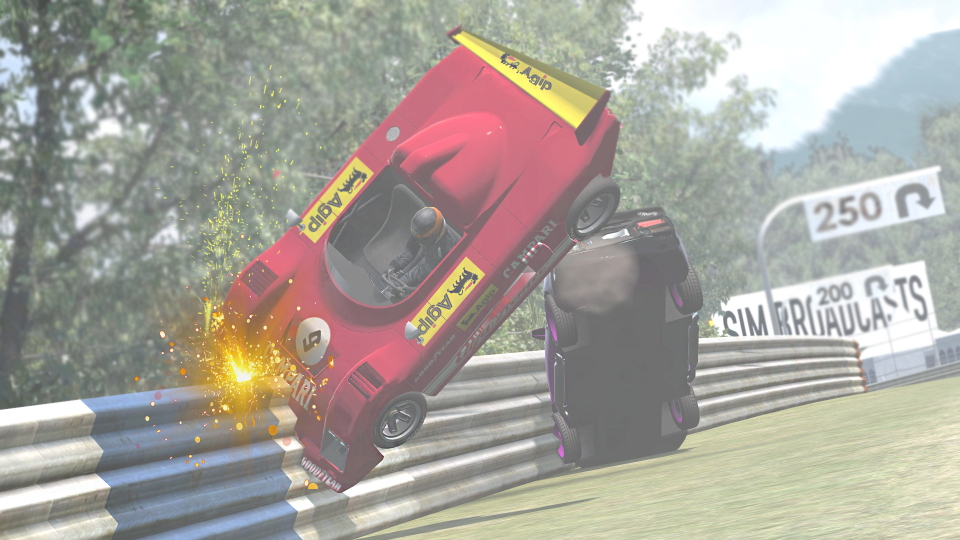 Simox had more troubles shortly after, hitting the Road Leader Trespasser in the chicane and sending him onto his roof.