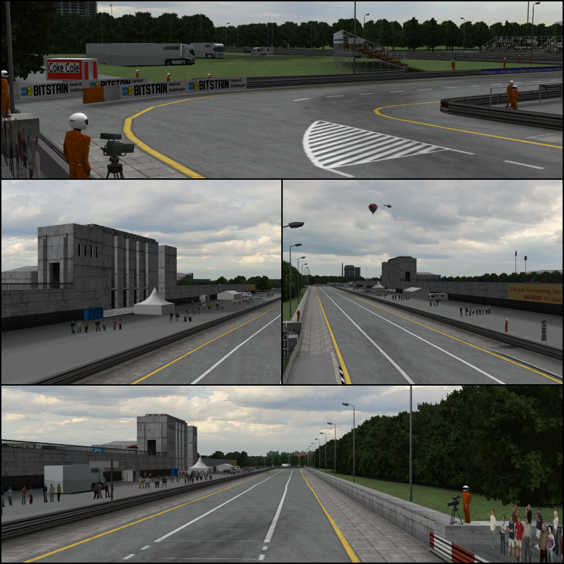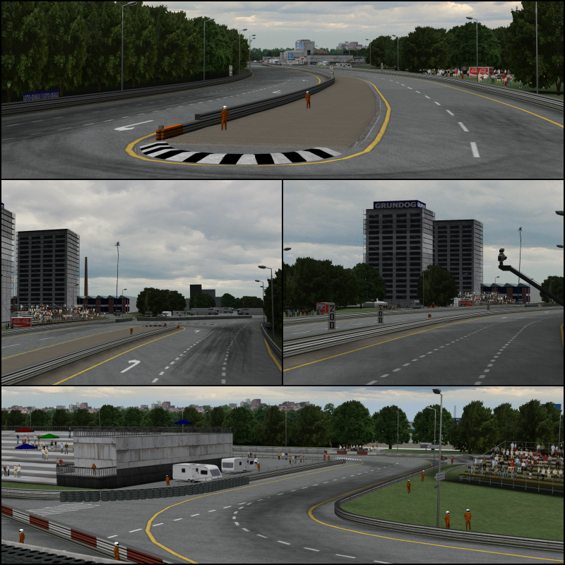 I've done a lot of changes.. Basically in short, redid crowd, added shadows all around the map, a lot lot more buildings and stuff around track, added Skid marks, starting lights, cameras all around the track at different locations, redid every tree from scratch and fixed all odd lighting on trees (and a lot lot more), layout/collisions still not finished.