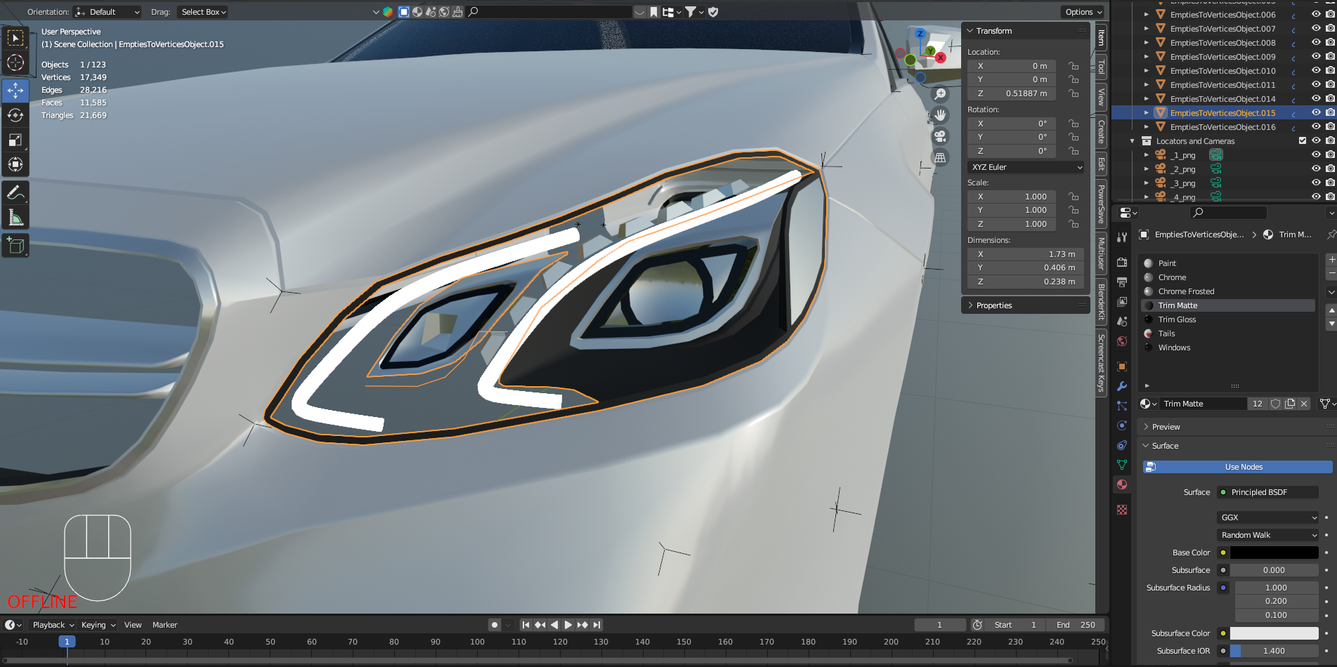 The lights were mostly created using reference images found on Google, modeled freehand. These weren’t the only references I used, and the headlights have been slightly adjusted in the final version.