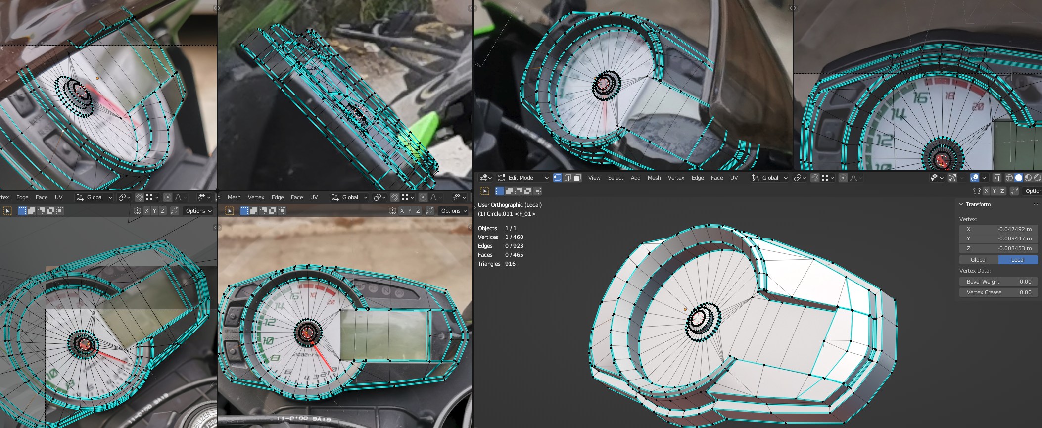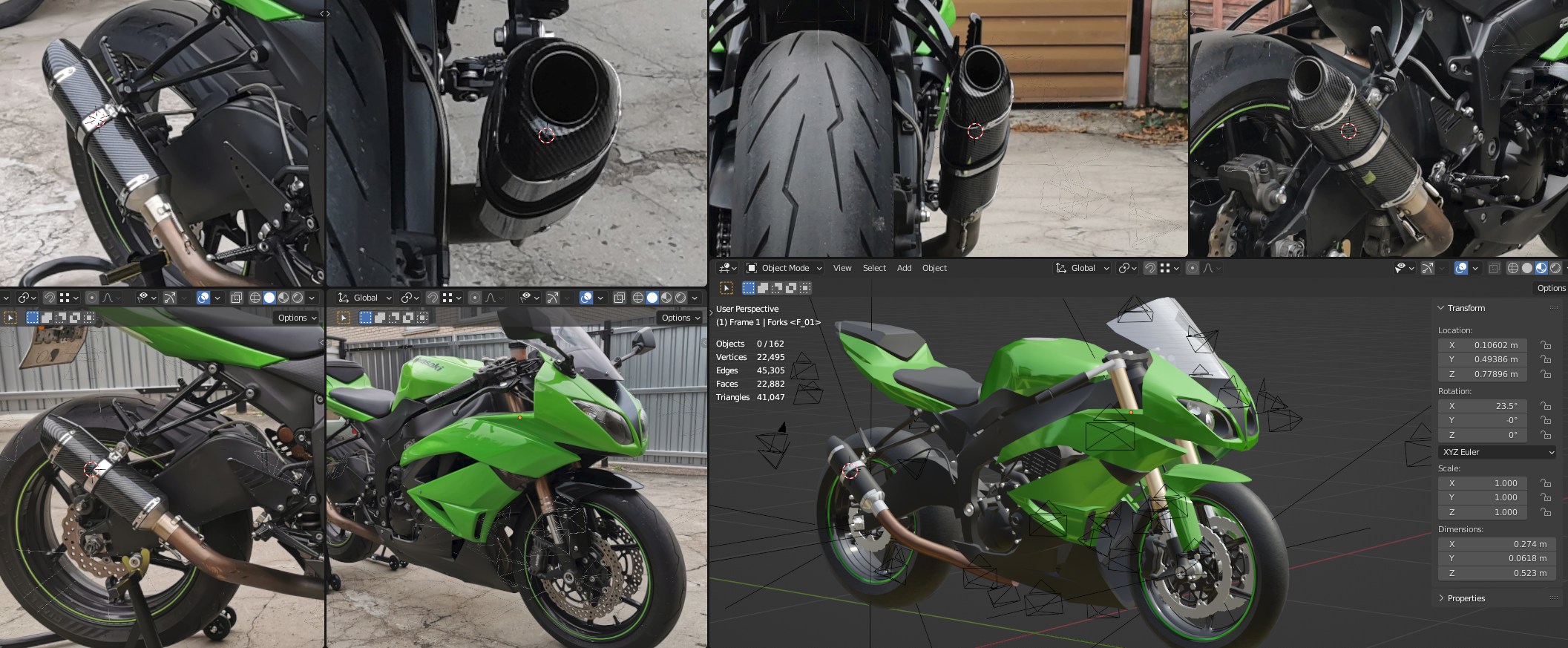 The way i started modeling my bike was that i took a lot of photos from all sides (over 500) and then used a photogrammetry software to make a rought model out of them. Then exported the mesh with cameras into blender.