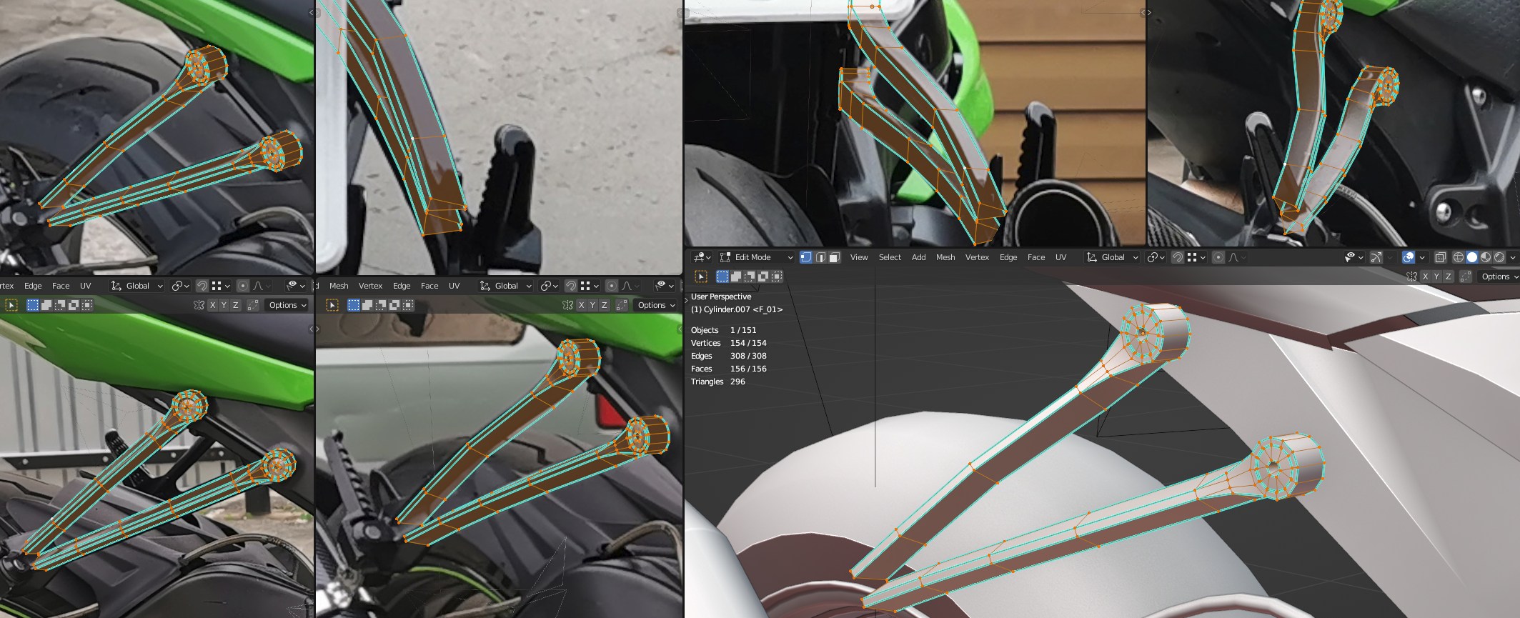 Started modeling rear swingarm, again some cameras weren't aligning well, but i did what i could.