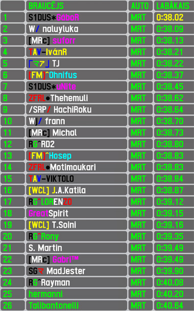 Server link: Ronys Tuesdays Fun Race Server has Airio as laptimes tracker,access the table with command !top