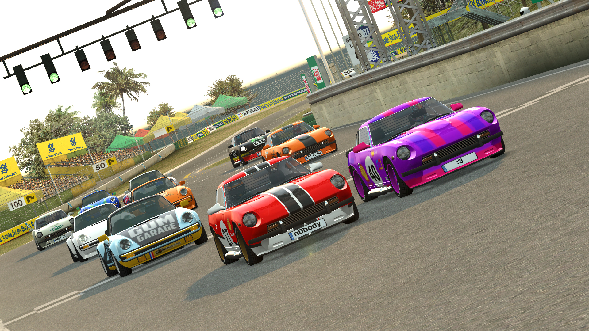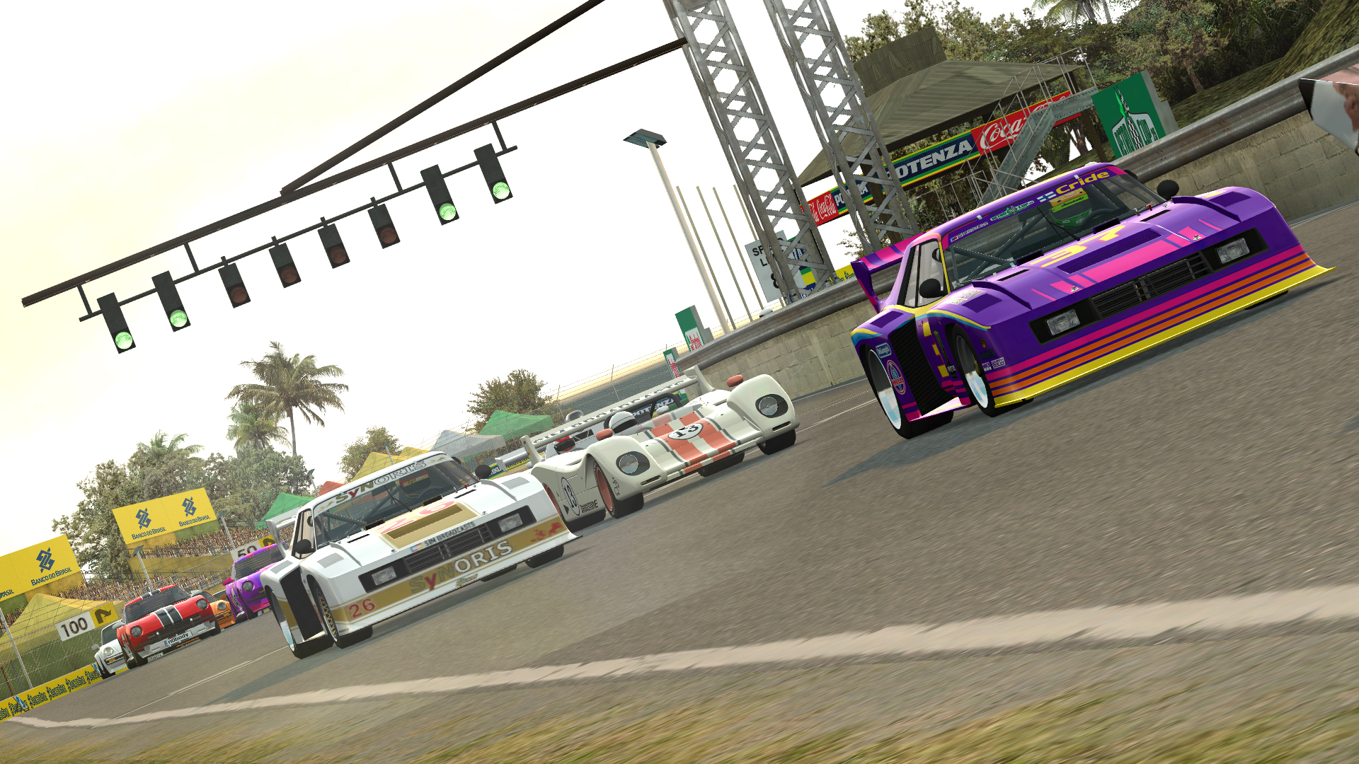 The race start was dramatic in LMP2: HachiRoku managed to get the switchback on Mazdarati at the get go, taking the lead, while behind it was a close group of [SQUID] SIMOX, RG^Rayman and RG^Lorenzo all tight together with other Group 5 and Prototype 1 cars.