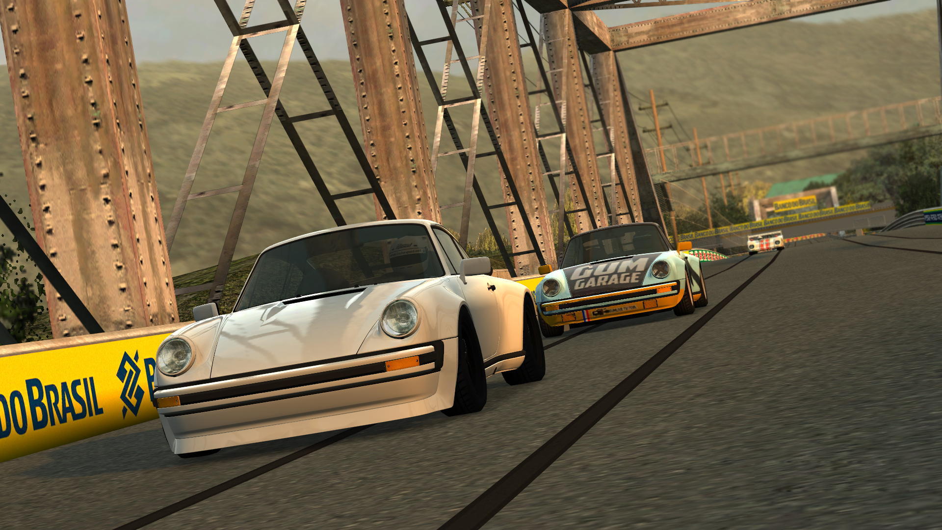 The race started with a BANG, quite literally: suforr had a better start than Trespasser, and overtook him before the jump, but here comes Round 1 winner GUM||Donald in his Porsche, taking the lead before the braking into Turn 1!
