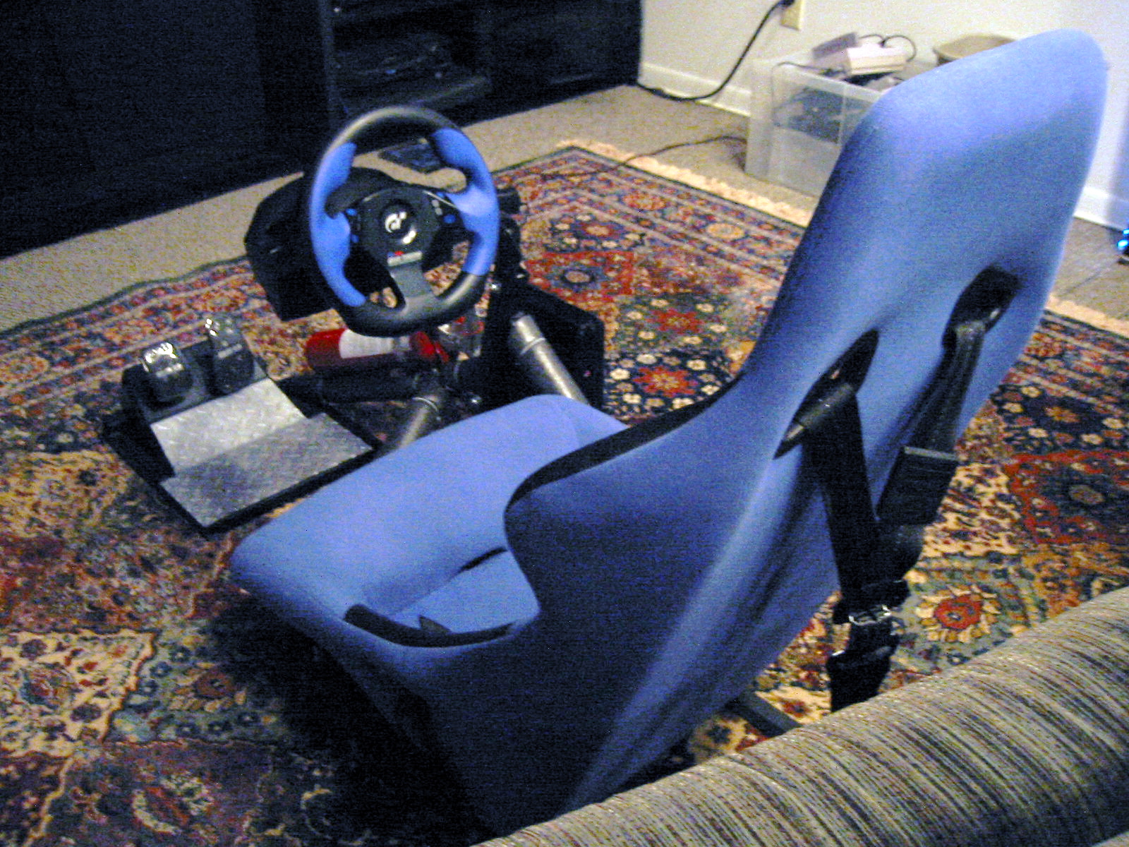 Pic of my racing rig is from 4 years ago when it had the old logitech wheel. now it has the G25 and the shifter attached. I'll have to get updated pictures soon.
