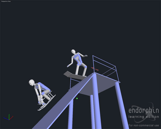 I only used active posing and constraints to let him snowboard down the ramp, do a backflip and land it! No animation was used. This shows the true power of Endorphin.