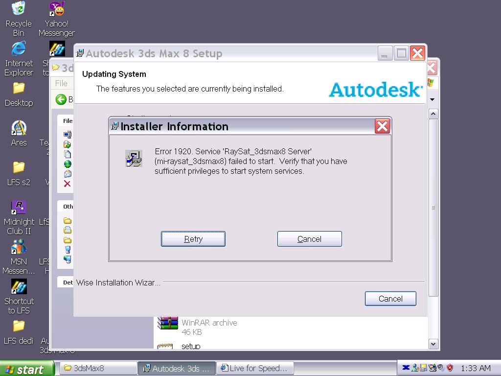 Agreed, seems odd someone who "bought" 3DSmax 8 wouldn't goto Discreet for help. The program is $3,500+.... yeah ehem... Did you download this kyler? Then somebody lock this, shouldn't help you install illegal software.