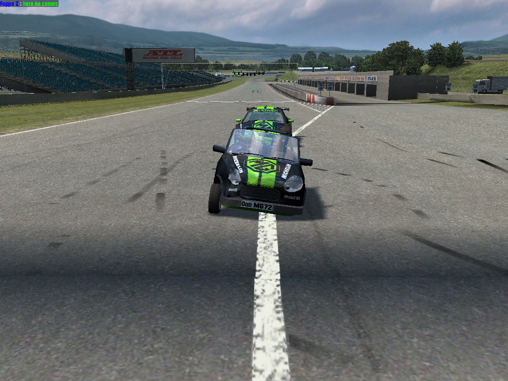 Raced in the chops sunday cup last night actually, 40 laps of as club reverse in rac's/fz5's. Had a good race with Viruz for the lead for the first quarter until I made a little gap and then had him right on my ass after the pit stops were over because he didn't take on any fuel. Advance 15 laps, I have a blow out and go off and the very next lap Viruz has a blow out and goes off. Replay's too large to attach, but you can get it at the chops website - http://www.chadseipdesign.com/chops/