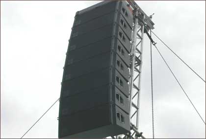 M-Audio Delta 2496 sound card running through QED Quenex 2 interconnect to a Rotel RA-01 amplifier, then through some QED Silver Anni bi-wire cable and out to a pair of B&W DM601 S3 speakers, finally there's a Moundant Short MS309 subwoofer for low end kicks too. As can be seen here.