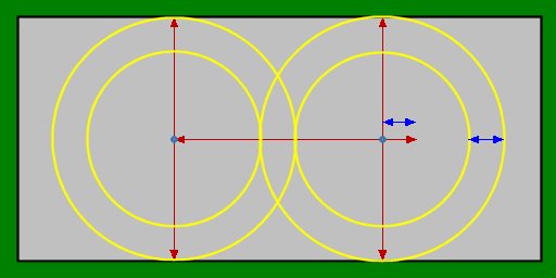 Red lines are equal to the diameter, blue lines are equal to the track width,