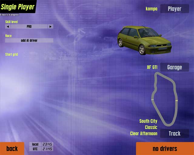 I joined the STCC server which was running the same combo as on the screenshot but alt-tabbed to windows (i know i shouldn't) and left it to load. When I maximized LFS it displayed an error which I can't remember but anyway it didn't let me join. I then closed LFS and started it again with pitspotter, tried to join the STCC server in a normal way but it was full so I went to SP mode to play with the XFG souds a bit. I wasn't able to go to the garage and when I clicked "add AI driver" it told me there is a race in progress. Going back to the start-up menu didn't solve the problem and changing the track didn't solve it either. Only restarting LFS did.