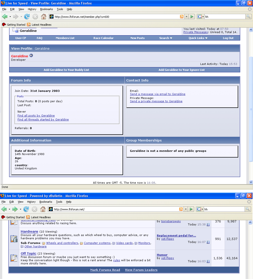 Geraldine is Scawen's wife and makes the tech support now as vic has retired from that and is concentrating on developing the LFS web stuff, and doing some other stuff